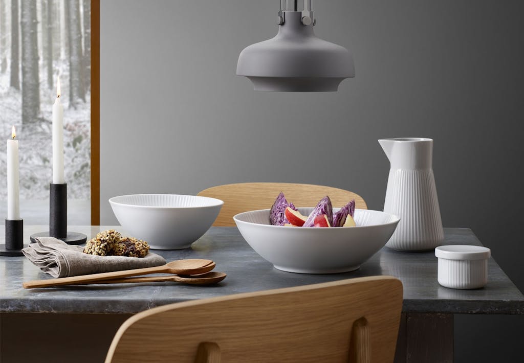 Eva Solos ovale Legio tallerkner er med form og enkelthed blevet en klassiker. Tallerknen kommer nu i Legio Nova stellet med karakteristiske riller, som med den ovale form skaber et tvist til den traditionelle borddækning. Brug de ovale tallerkner sammen med de nye serveringsfade - de fås både som runde og ovale, så de har et utal af anvendelsesmuligheder.