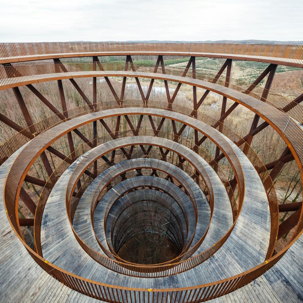 Det imponerende udkigstårn i form af en spiral, kræver en hård gå tur for at nå til tops, og derfra kan man nyde den 360 grader udsigt ud over en af Sjællands smukkeste skovområder. Da tårnet er en spiral med fladt underlag, kan både kørestolsbrugere og barnevogne komme med op og nyde udsigten.