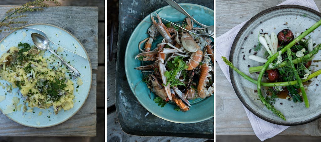 Hør kviste knække under dine fødder, se det bløde diffuse lys vælde ned mellem træerne i skoven, mærk den bløde skovsø omfavne dig i en dukkert, og smag på friske og sprøde råvarer direkte fra naturen. I Mette Helbæk og hendes partner og mand, Flemming Hansens, idylliske resort og skov-restaurant kommer man helt tæt på naturen og får stimuleret hele sit sanseapparat.