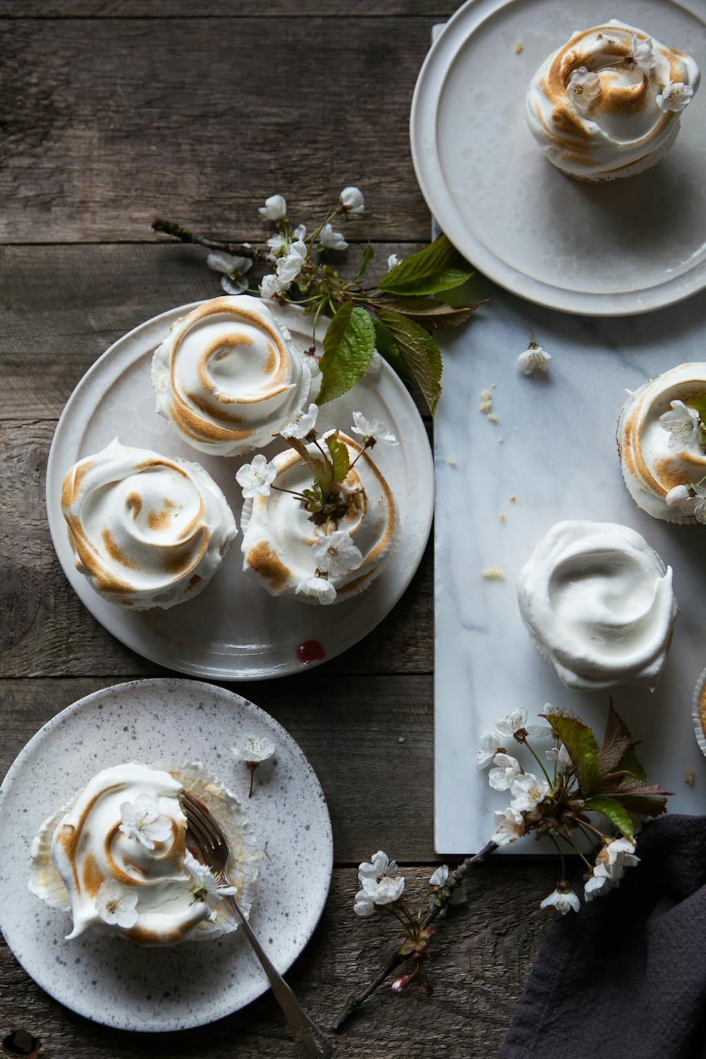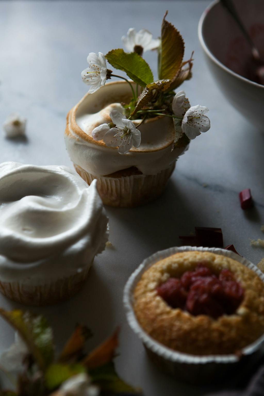 Vores blogger, Blueberry Tales, har lavet disse lækre rabarber cupcakes med marengs til alle de seje mødre derude.
