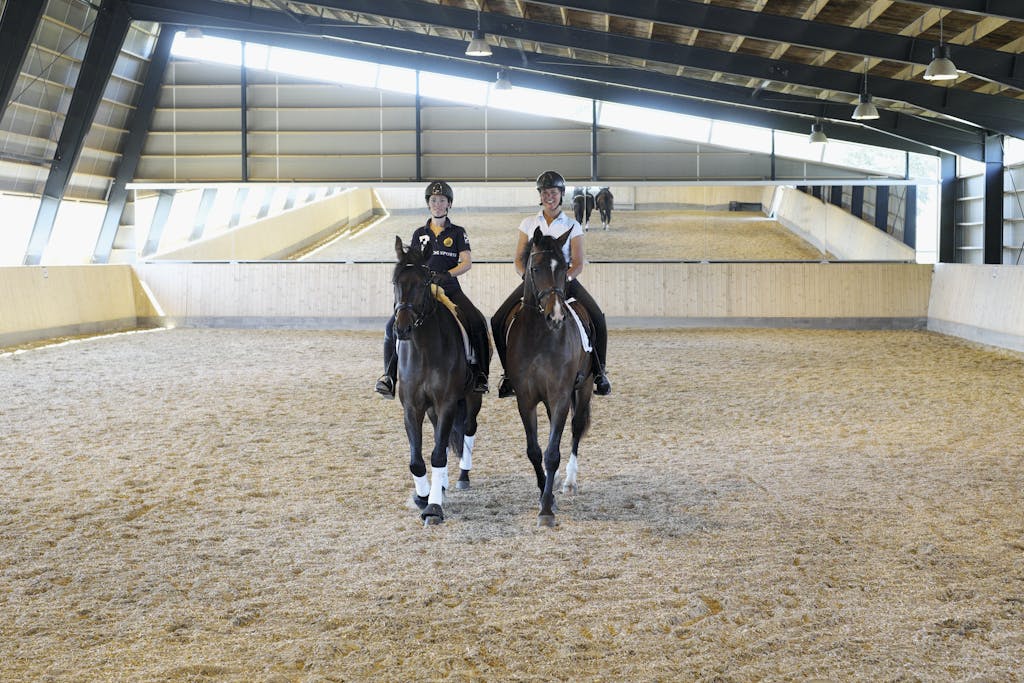 Stutteriet har også en indendørs ridebane - på billederne nederst er kvinden i den hvide T-shirt Birgitte Ring.