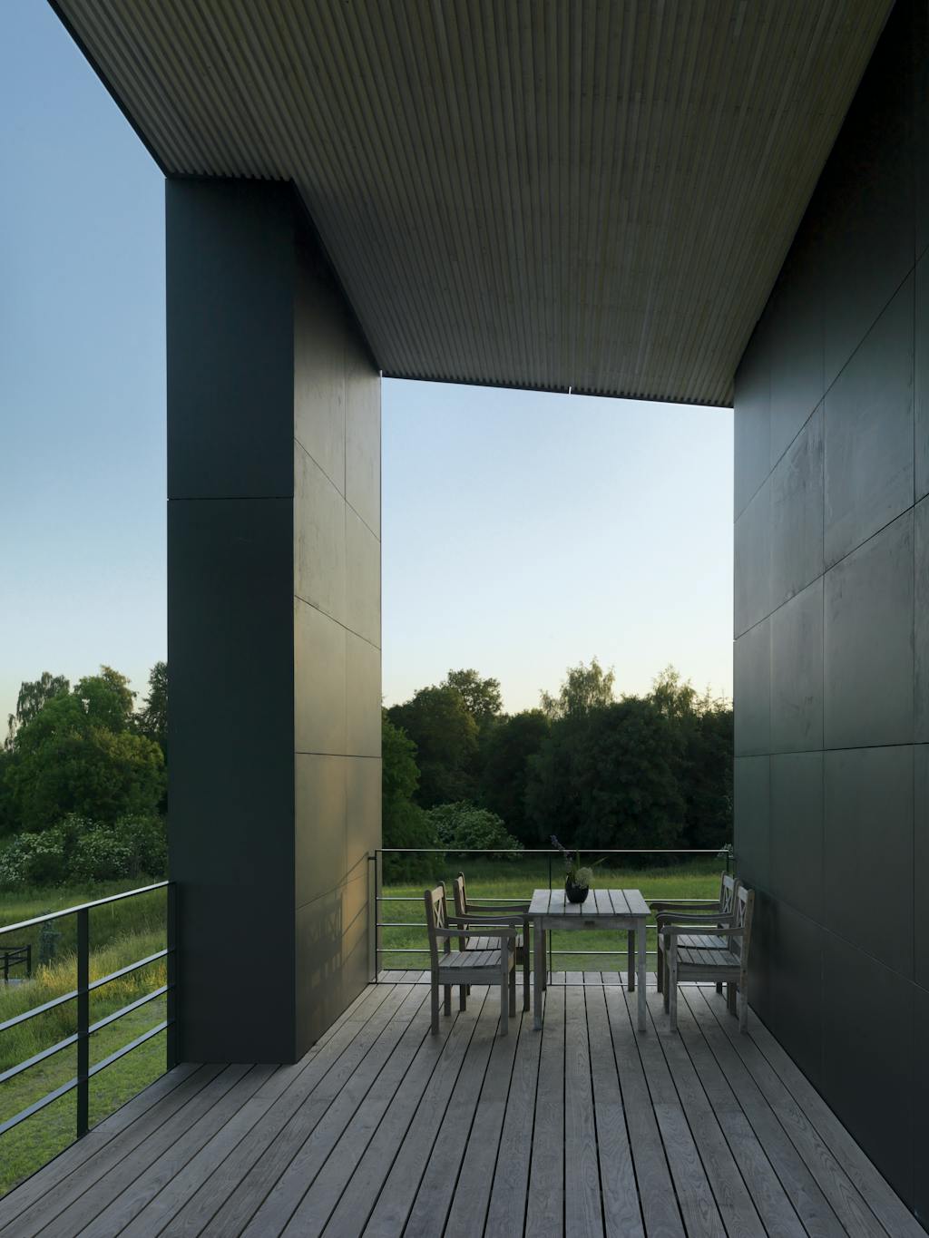 Stuehusets øverste etage er på 250 m2, og etagen nedenunder har status af kælder og rummer gæsteafdeling plus kontor. Alle facader er beklædt med Equitone fra Ivarsson, som er af fibercement med cement som bindemiddel sammen med fibre. Et bæredygtigt materiale med silkeblød overflade tilpasset det nordiske klima og derfor vejrbestandigt.