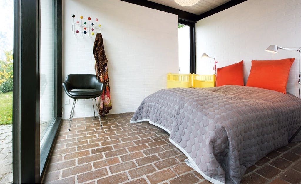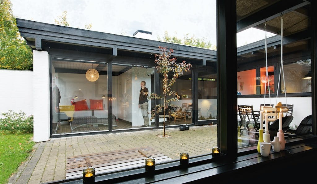 Da Lene og Rasmus Bak købte det smukke hus, tegnet af Friis og Moltke, i Højbjerg ved Århus, havde de forrige ejere været grebet af stilen i 1990erne med køkken i kirsebærtræ og koboltblå detaljer. De nye ejere valgte dog at føre hus og inventar tilbage til rødderne.