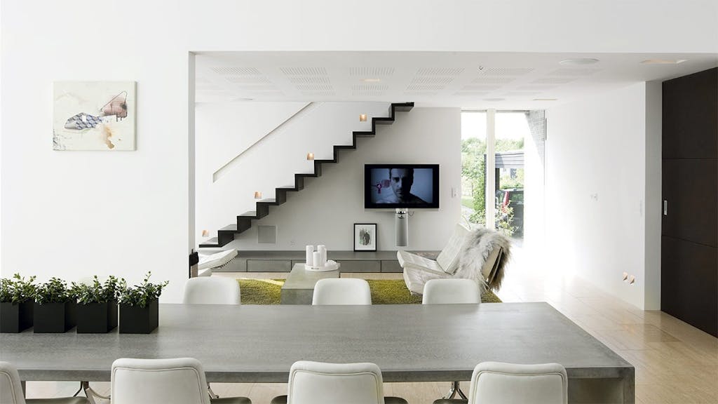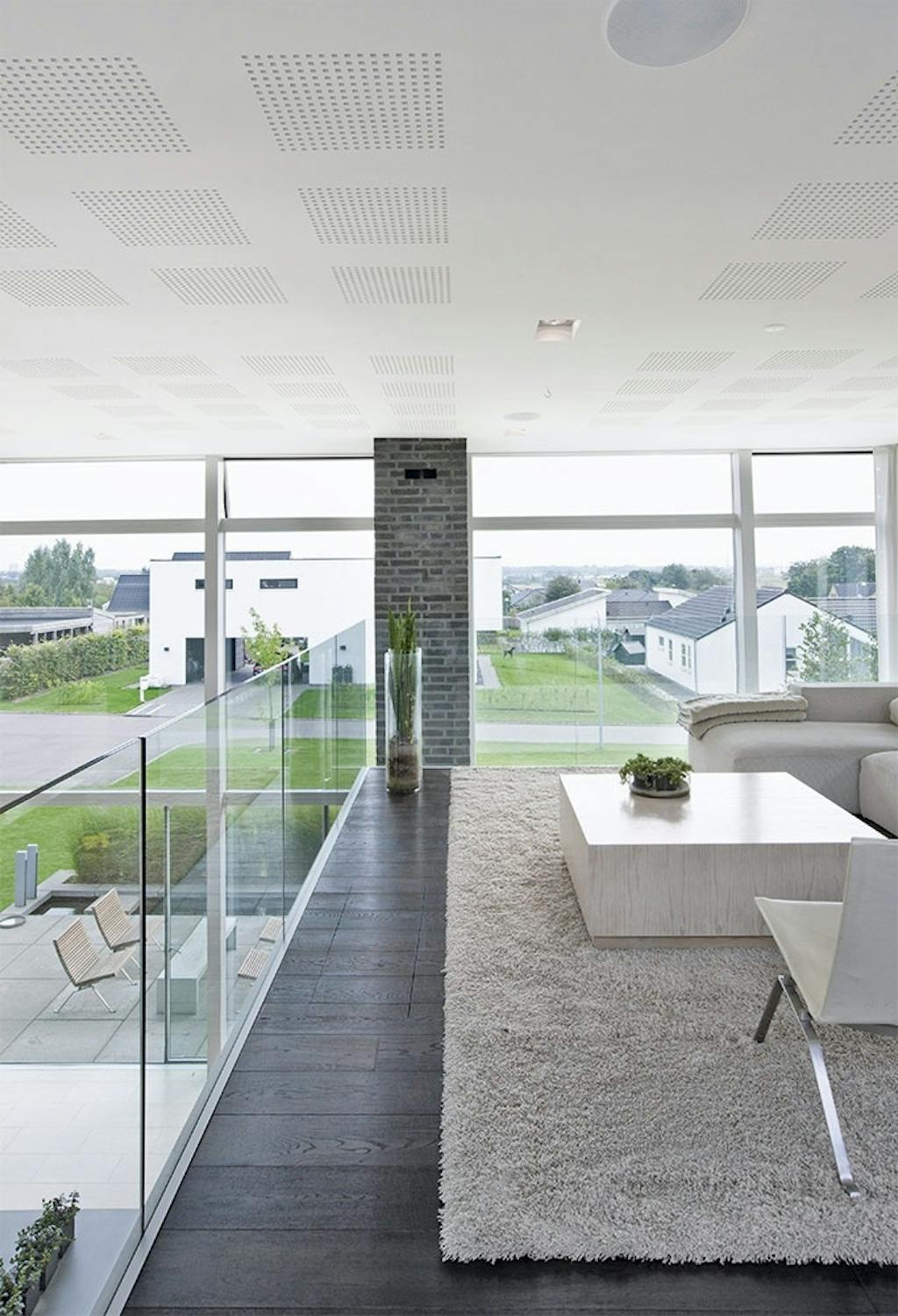 Gardinet kan styres, alt efter hvor åbent eller lukket huset skal tage sig ud. Det gør desuden, at solen ikke generer, men det er alligevel ikke mere lukket, end at man kan skimte, hvad der sker udenfor, mens folk derimod ikke kan kigge ind.