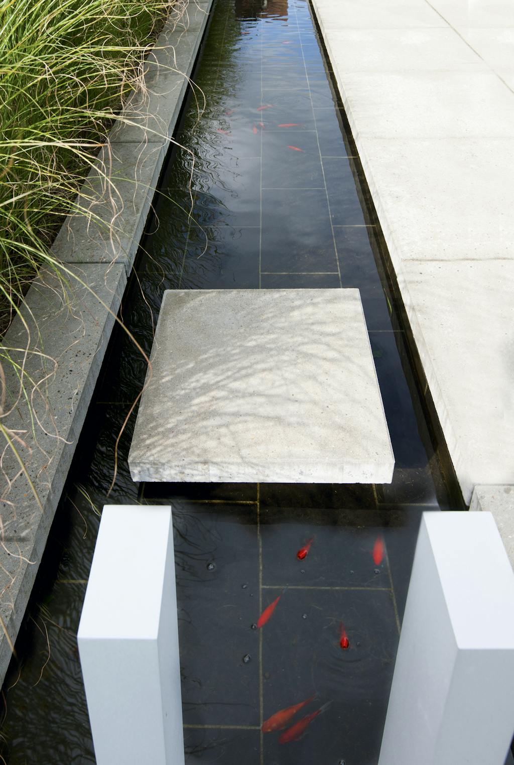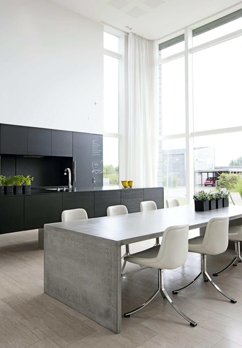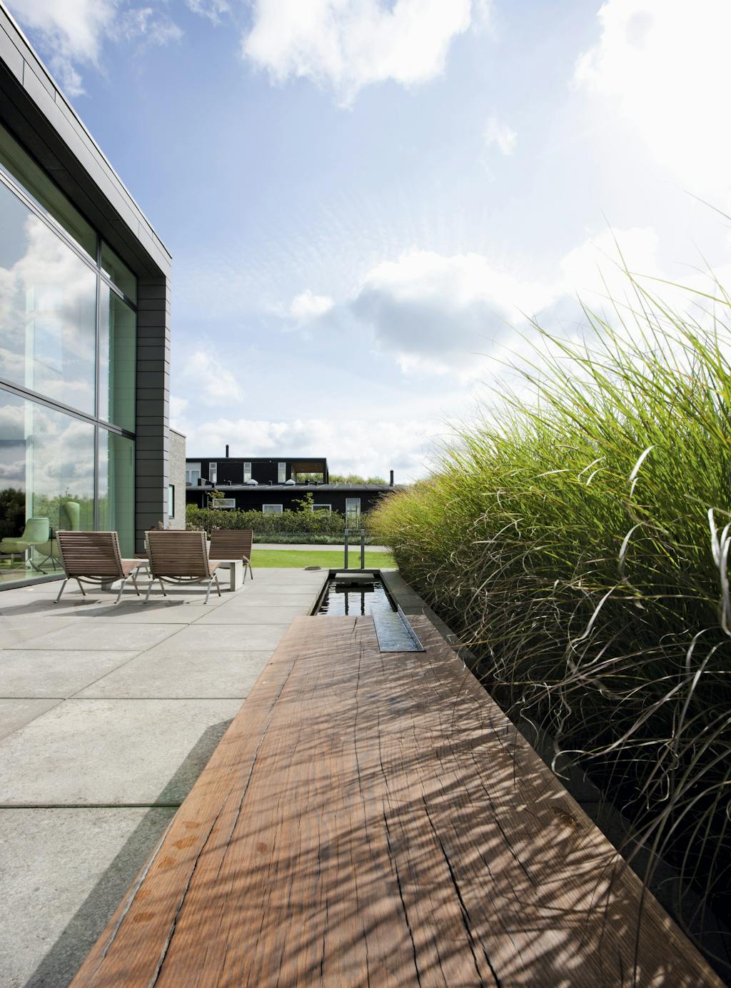Jeg har derfor lagt baghaven oven på baghaven huset og opnået samme privathed, forklarer arkitekten. Den traditionelle hæk i forhaven, der også giver en form for privatliv, er erstattet af høje græsser samt et stort motoriseret indvendigt gardin, der dækker hele glasfacaden.