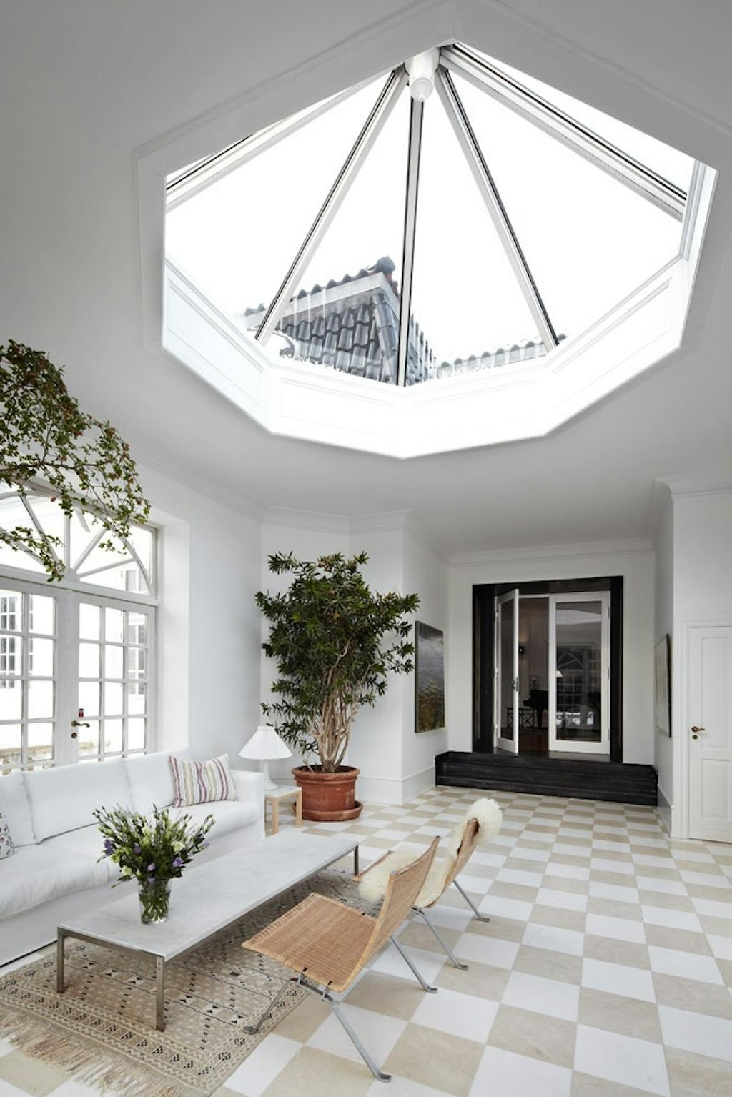 Det er Bille August, der viser rundt, og derfor også fører ordet i denne reportage. Da familien overtog huset, skilte især to rum sig ud og trængte til en renovering. Hallen var mørk og ganske enkel for brun, og køkkenet i teaktræ skilte sig stilmæssig ud fra resten af huset og var ikke funktionelt nok.