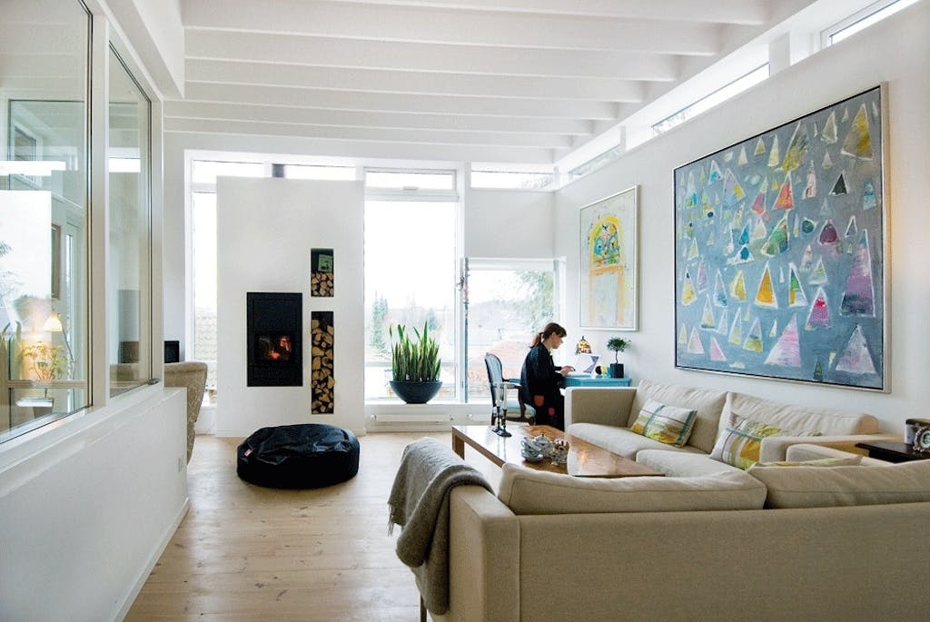 Lys og luft, meget højt til loftet, nej tak til samtalekøkken, ja tak til spisestue og ellers frit spil, lød kodeordene til arkitekterne Claus Hüttel og Klaus Møller fra arkitektfirmaet C.F. Møller, da Pernille og Niels Sandahl i 2004 besluttede sig for at bygge nyt hus i Højbjerg ganske nær ved Mindeparken og Marselisborg Slot.