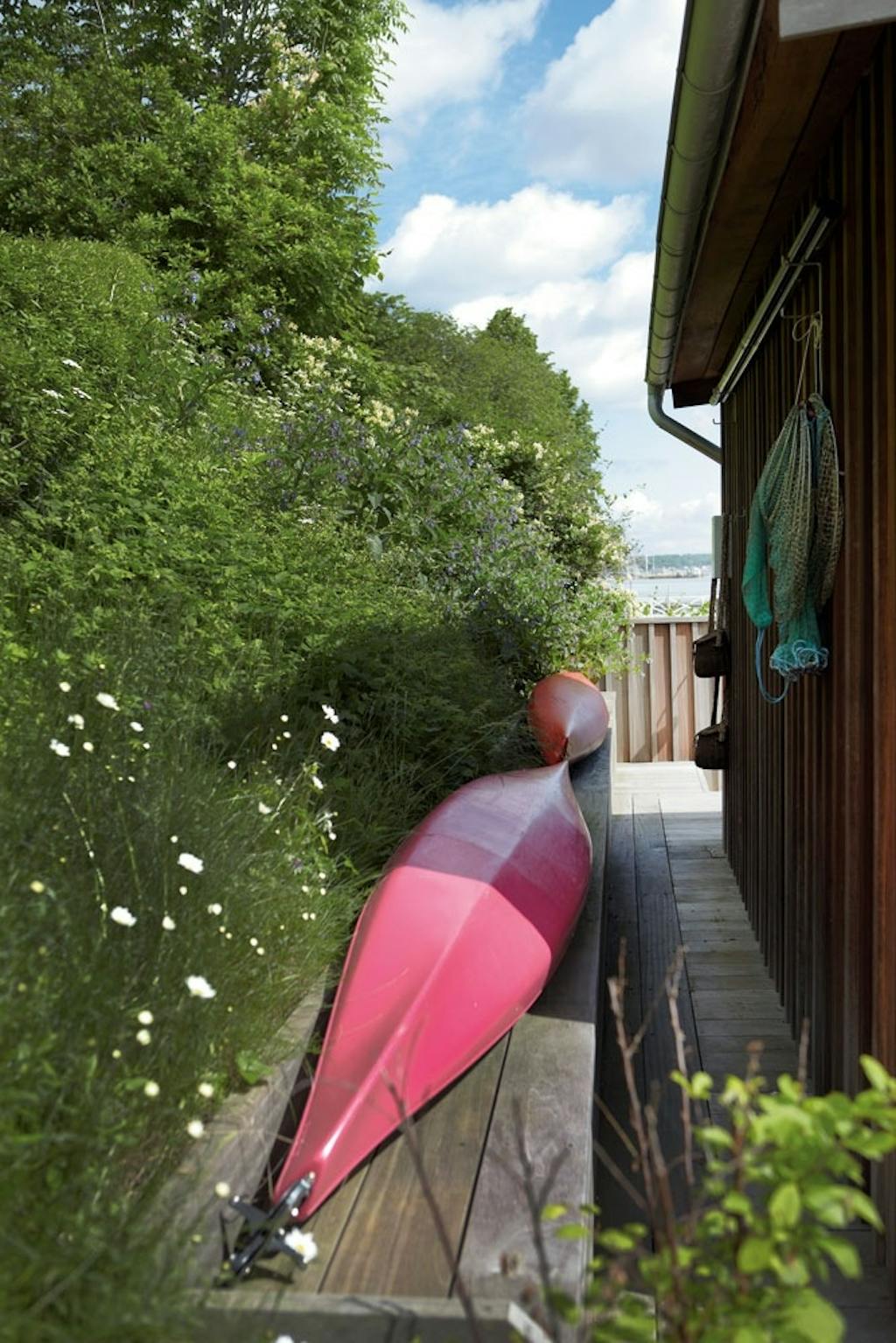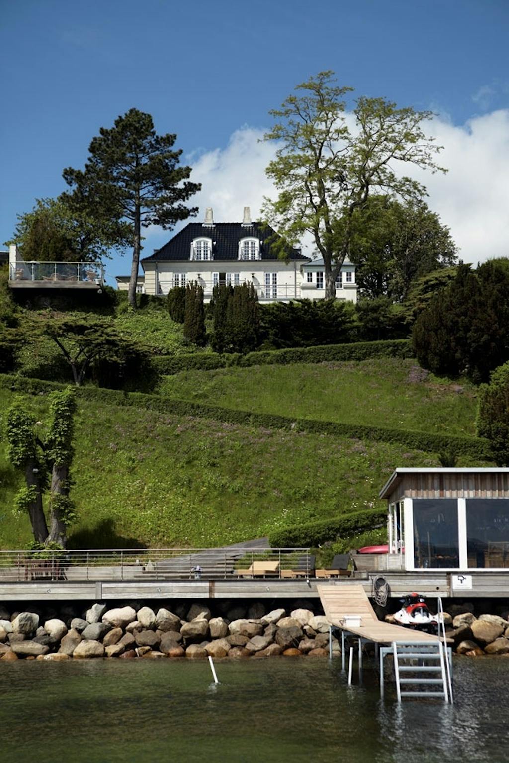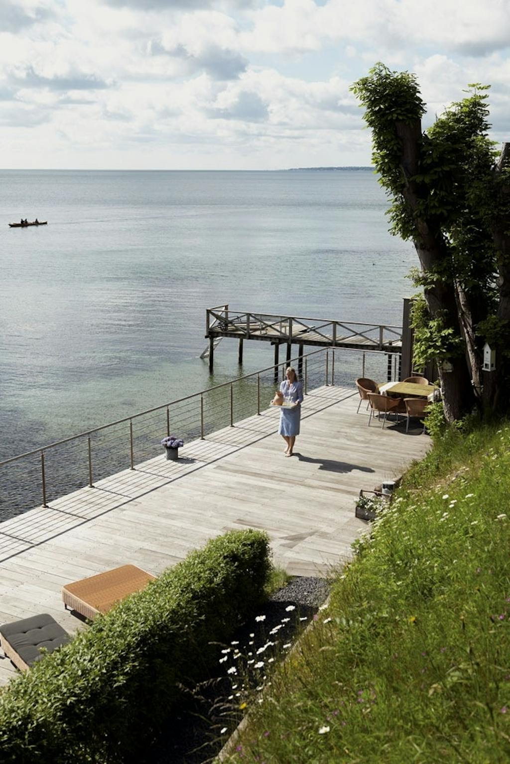 Med en betagende udsigt over Nivå Bugt har en familie fået et enestående uderum. Et badehus helt ude på kanten af den store og helt igennem spektakulære terrasse opfylder drømmen om at kombinere deres hjem med et sommerhus.