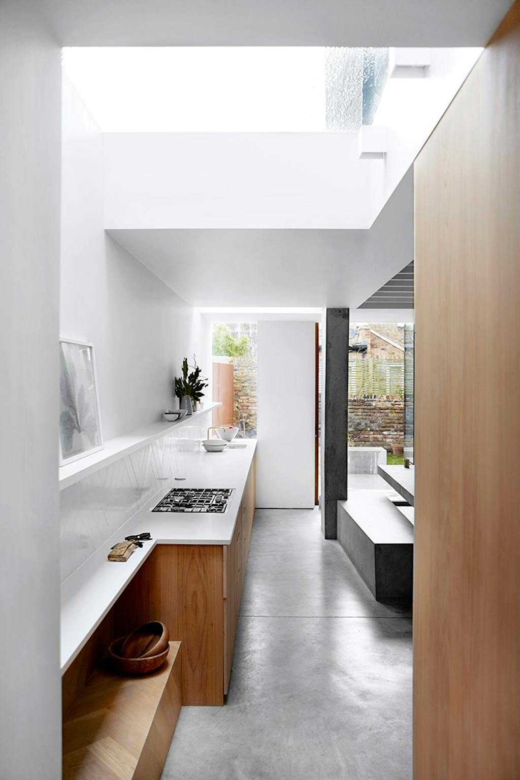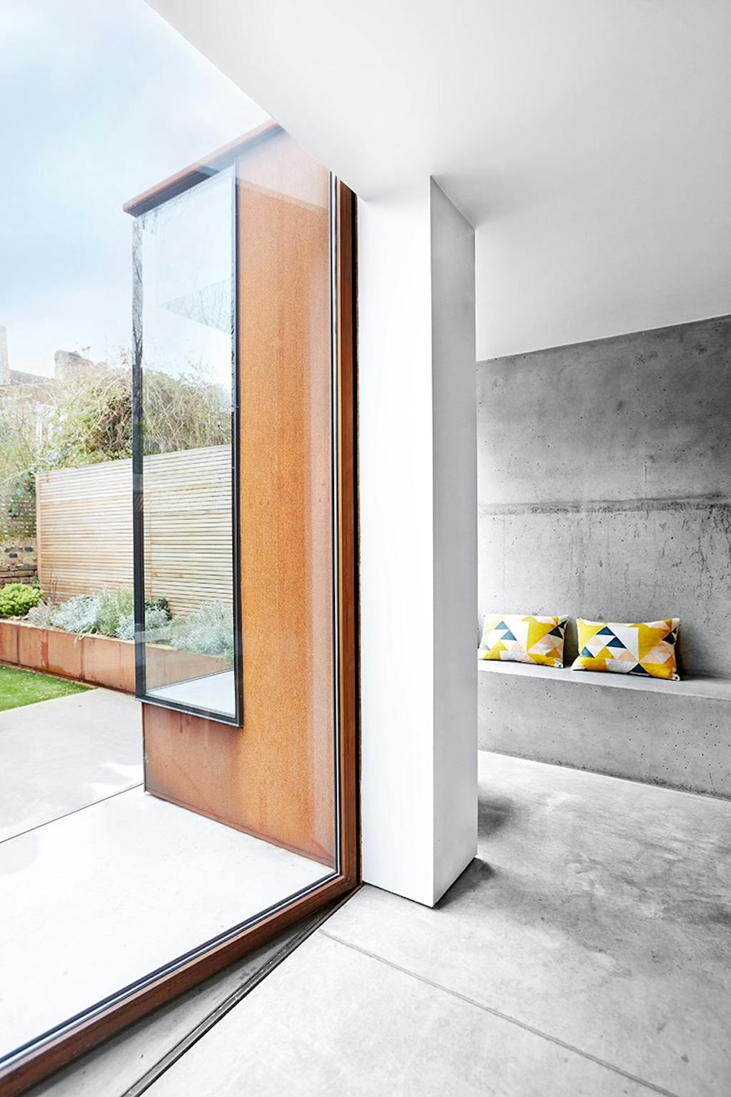 Fra man går gennem den sorte hoveddør ind i stuen med dens traditionelle pejs og lyse møbelindretning, til man går endnu længere ind, hvor en enestående tilbygning åbenbarer en uventet sammensætning af beton og gulv til loft-vægge af glas, som åbner det victorianske hus fra 1880 op mod et flot udsyn til haven.