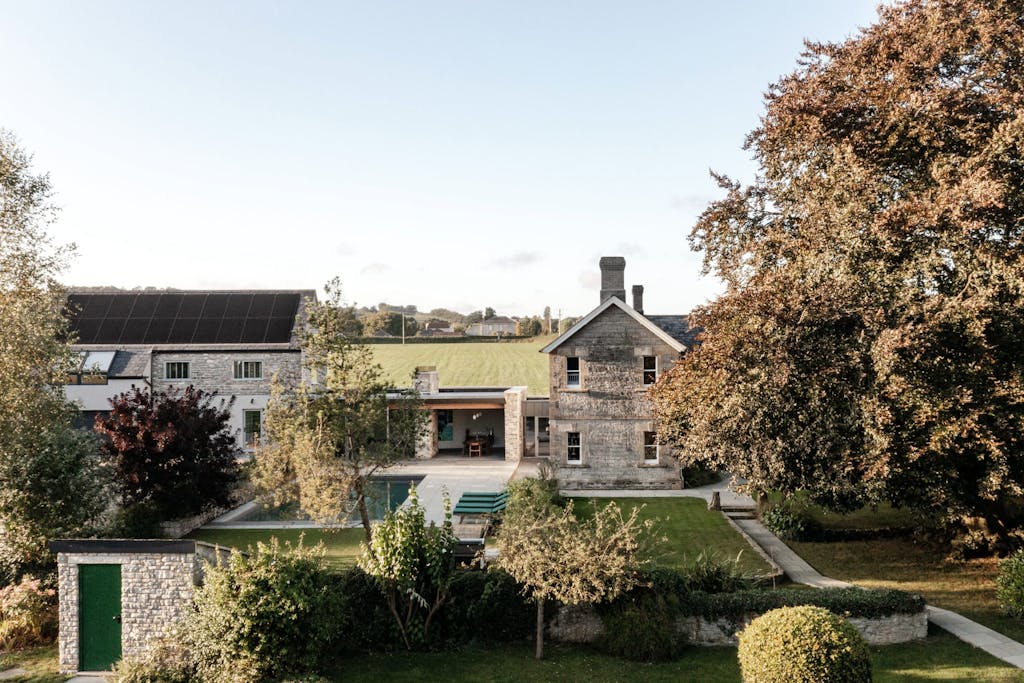 Midt i Somersets bakkede landskab i England har en idylisk gård fra det 19. århundrede fået en transformation, der bygger bro mellem fortidens byggestikke og nutidens moderne familieliv - på helt bogstavelig facon.