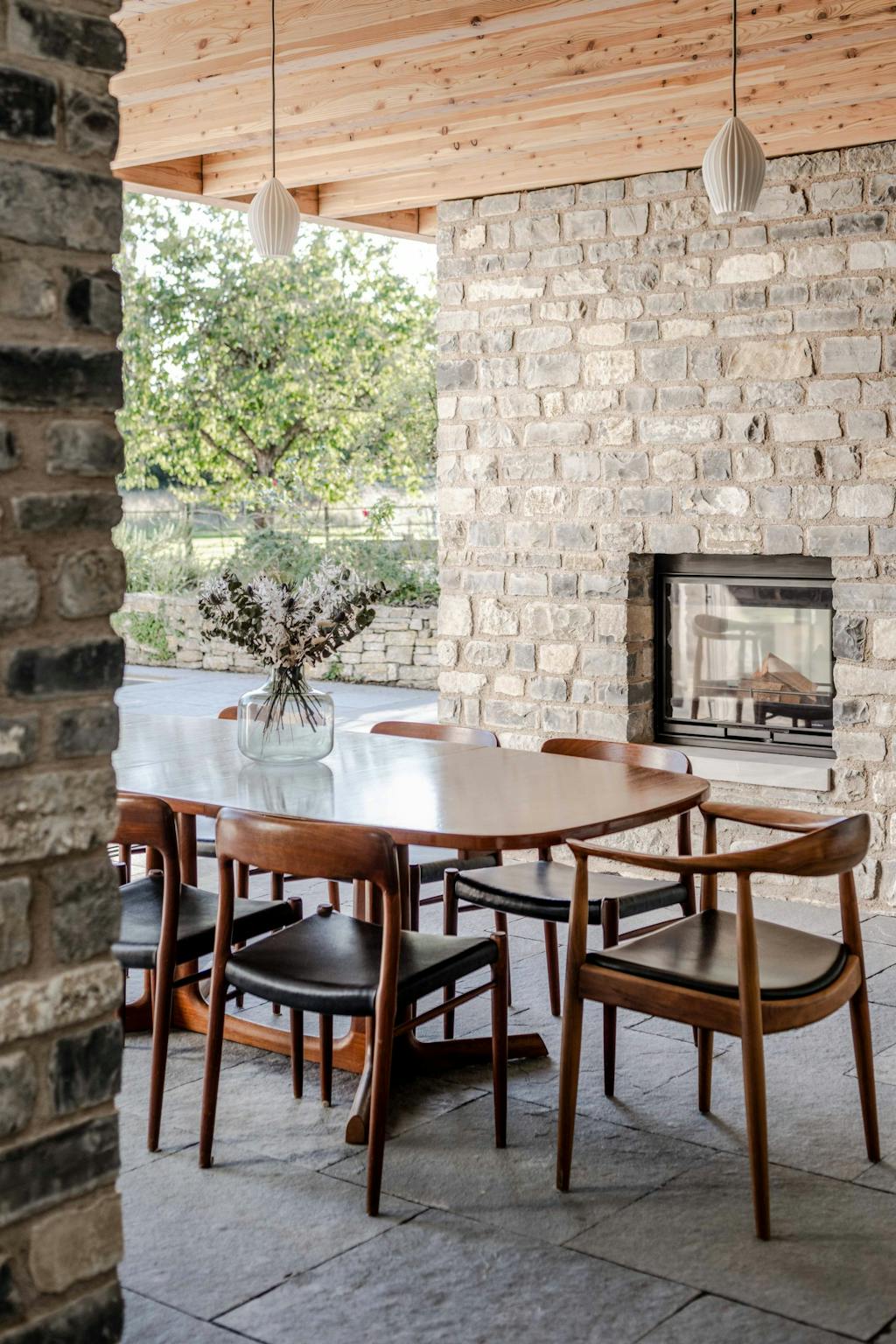 De store vinduer kan trækkes helt til siden og dermed lade ude og inde flyde sammen i de måneder, hvor vejret tillader det.