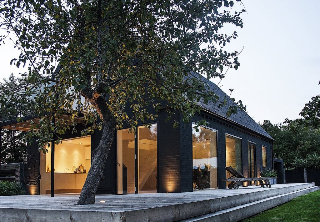 Der var virkelig brug for en opkvikker. Det gamle rødstenshus stod og plirrede træt med øjnene - med små og få vinduer. Efter en lang proces blev udstrålingen dog noget anderledes. Murværket har fået en sort sandskuring, som matcher tegltaget, og de nye vinduesrammer er bygget ind i muren, så der næsten opstår en akvarium-agtig rummelighed.