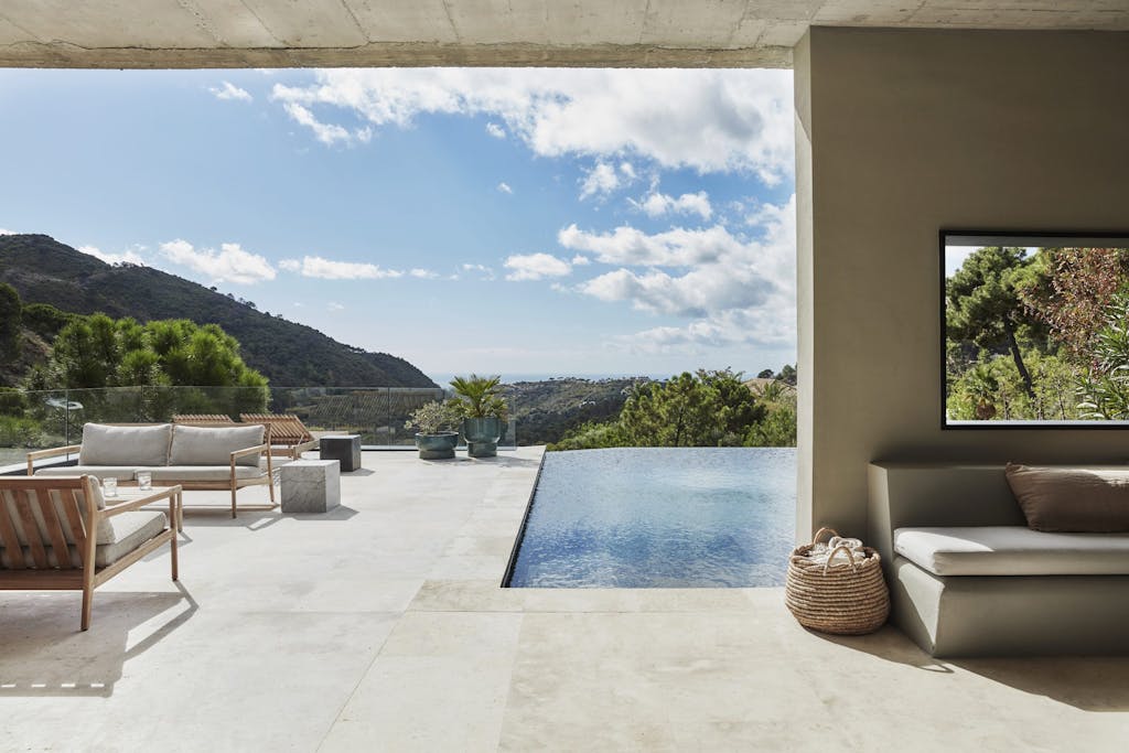 Loungeområderne ved infinitypoolen er ren luksus, og villaen er en rolig oase, hvor familien og deres gæster kan nyde solen og naturen i perfekte rammer af design og livsnydelse.