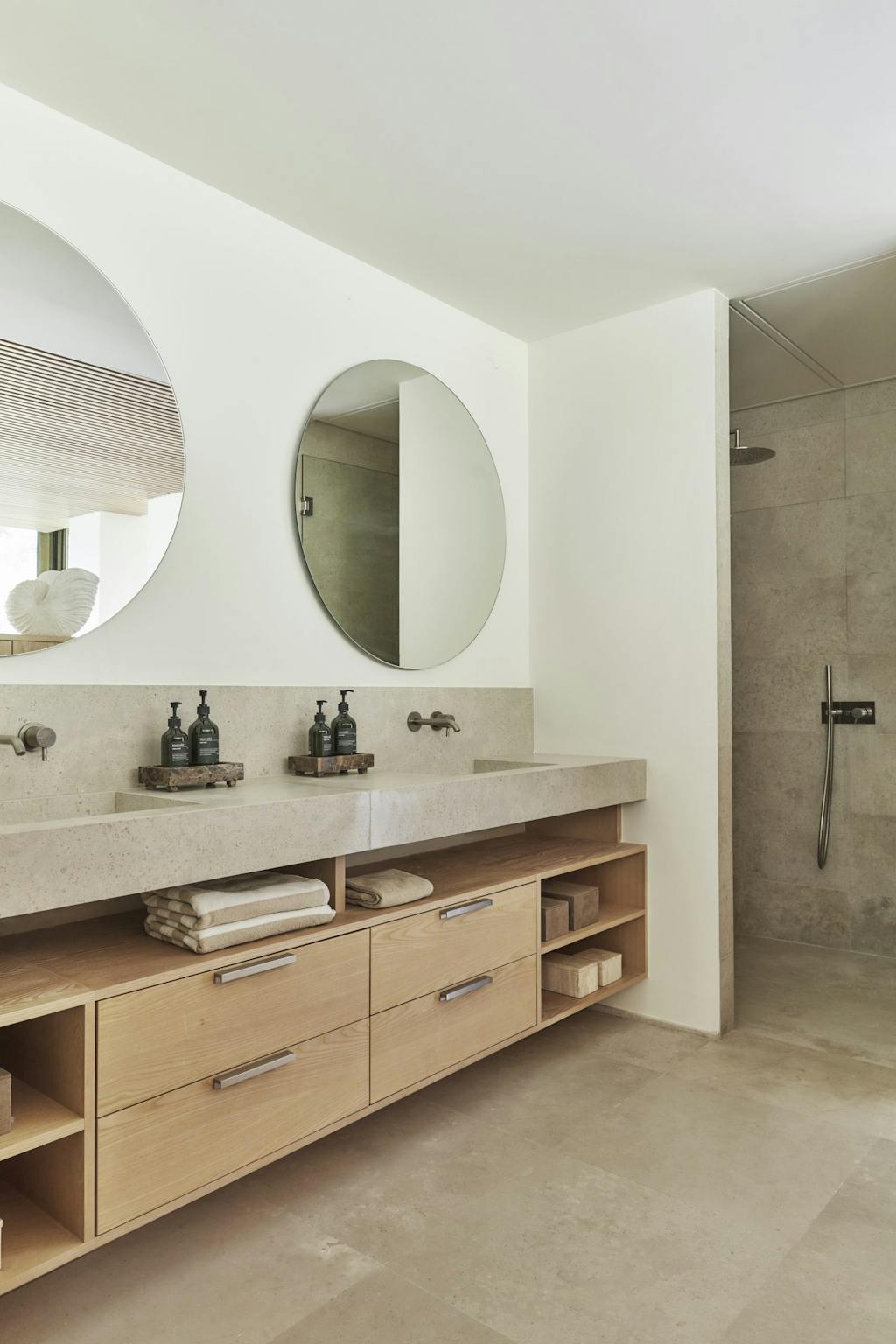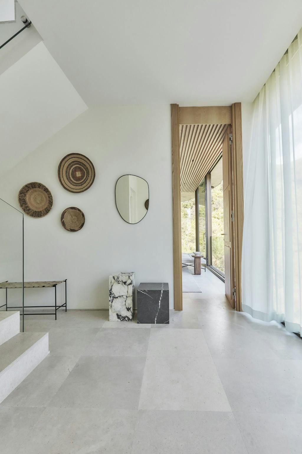 Hans tilgang var derfor meget personlig, og ved at lade sig inspirere af stedets lys, materialer og udsigt har han skabt en sammenhængende indretning, der trækker naturen helt ind i rummene. Her er arbejdet med varme farver, luksuriøse materialer som marmor og træ samt moderne, skulpturelle møbler med til at give hjemmet et raffineret udtryk.