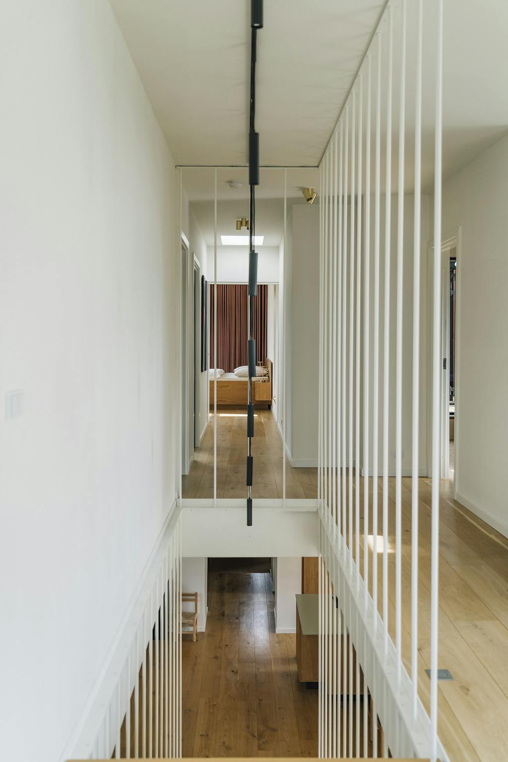 – Grunden er unik, idet den strækker sig over to adresser, med en vej i hver ende, hvilket var noget af det første, vi lagde mærke til, og grobunden for at bygge noget spektakulært. Derfor ville vi lave et hus med to hoveder, så at sige, lidt a la Forlæns og Baglæns fra Bamses Billedbog – forstået på den måde, at det skulle være meget ekspressivt i begge retninger. Den del af facaden med hoveddøren vender mod vejen, den anden ende af husets facade vender mod søen – her har vi sat en låge i, så man også kan komme ind og ud den vej. Det er ikke så tit, man ser et hus med adgang i begge ender, forklarer Bo Benzon.