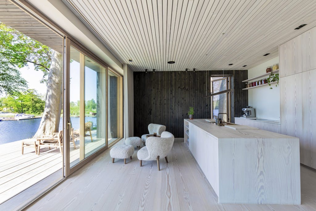 – Vi ville gerne have et hus i naturlige materialer, som passede ind i omgivelserne og var tro imod dem. Når man er i huset og kigger ud, føles det, som om man er i ét med naturen, siger Pernille Blas Kvorning, som sammen med sin mand, Jeppe Blas Kvorning, og deres tre børn har boet i deres nye hjem ved søen i halvandet år.