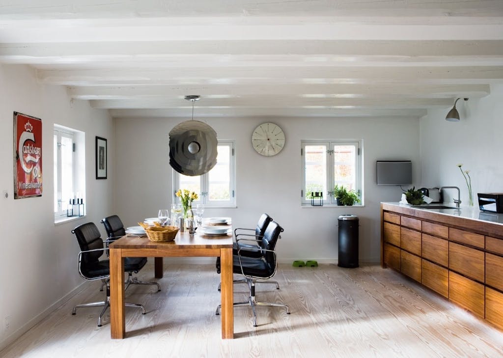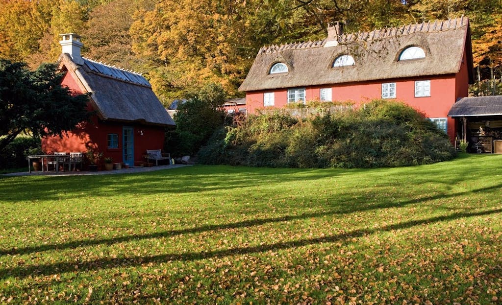 Det rødkalkede og stråtækte landhus skuer over omkringliggende marker med græssende køer og fritgående heste. Familien i dette hjem i Nordsjælland henter vand fra egen kilde ...