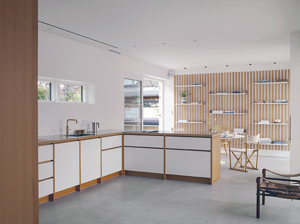 Skydedøre adskiller soveværelset, badeværelset og garderoben og fungerer som gardiner, der giver privatliv, uden at lukke af for lyset eller rummets åbenhed, og gulvhøje døre skaber illusionen af ekstra loftshøjde. Hver detalje er nøje gennemtænkt, fra materialevalg til lysindfald, for at skabe et hjem, der ikke kun er smukt, men også fungerer i hverdagen.
