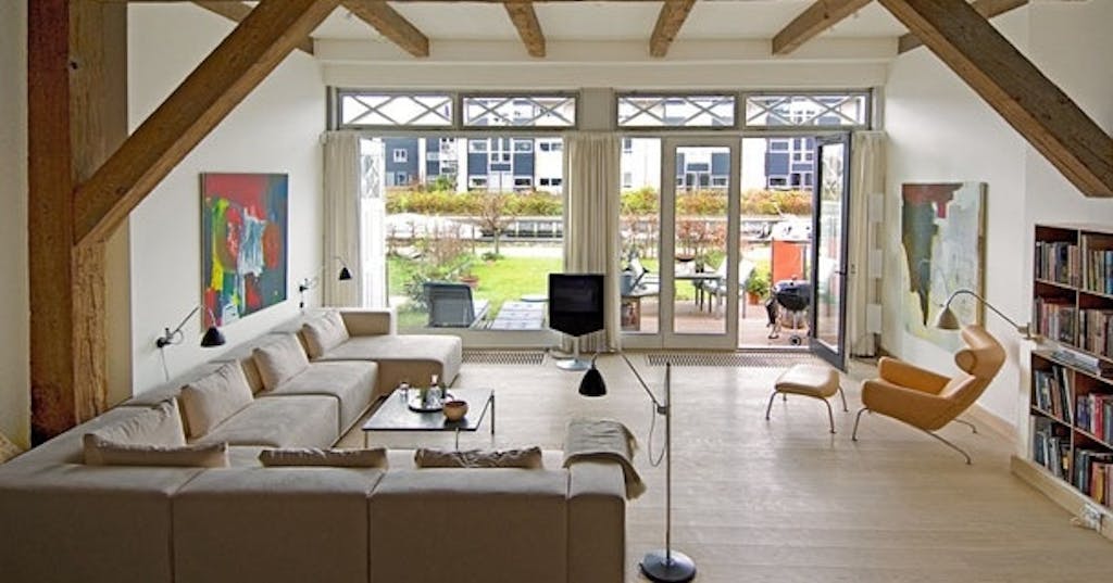 Vandet skvulper kun få meter fra de store, åbne porte foran stuen, og egetræsbjælkerne har stadig mærker efter bådebyggernes mejsler. Her har en familie på tre fundet deres drømmebolig.