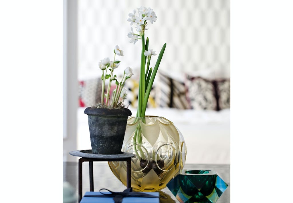 Møbelvalget er selvfølgelig præget af, at Annika Semler selv har en uddannelse som designer, og de moderne designs lette og rene linjer får indretningen til at syne minimalistisk og i harmoni med arkitekturen. Vel at mærke uden at det bliver fanatisk. Her er nemlig også afsat god plads til de vintageelementer, antikviteter og andre personlige effekter, der gør en ind- retning personlig, og som Annika Semler insisterer på, at der også skal være plads til, hvis man skal have en indretning til at fungere.