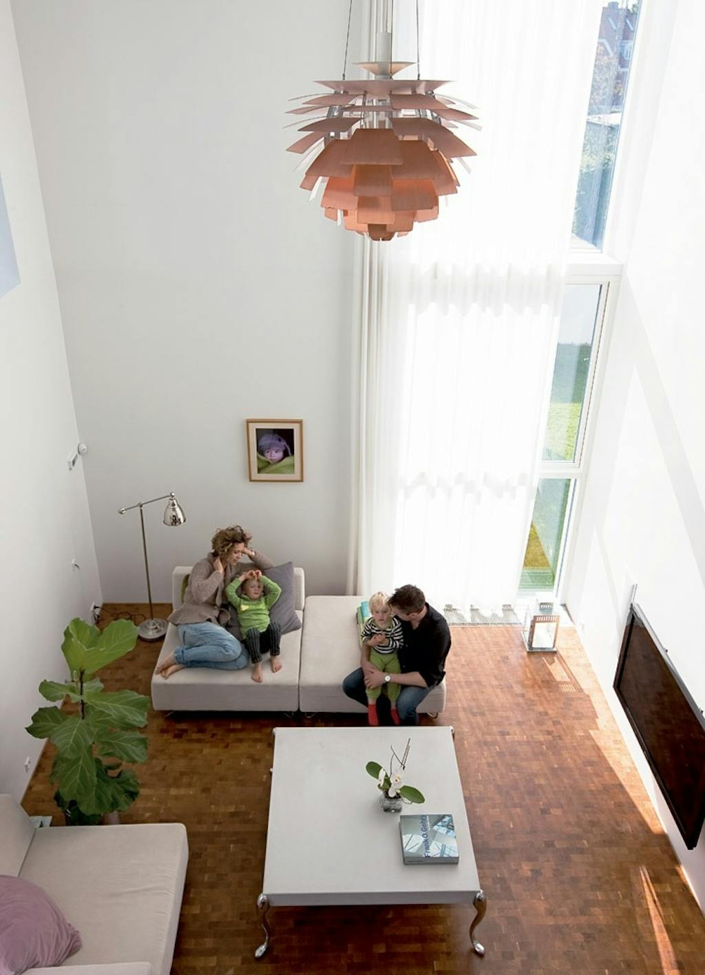 På adressen lå der bare en helt utrolig, hvid, funktionel og futuristisk kube. Men den var god nok: Her bor arkitekten med sin kone, Henriette Crone Fuglsang, og deres to børn, og han har selv stået for den overbevisende transformation.