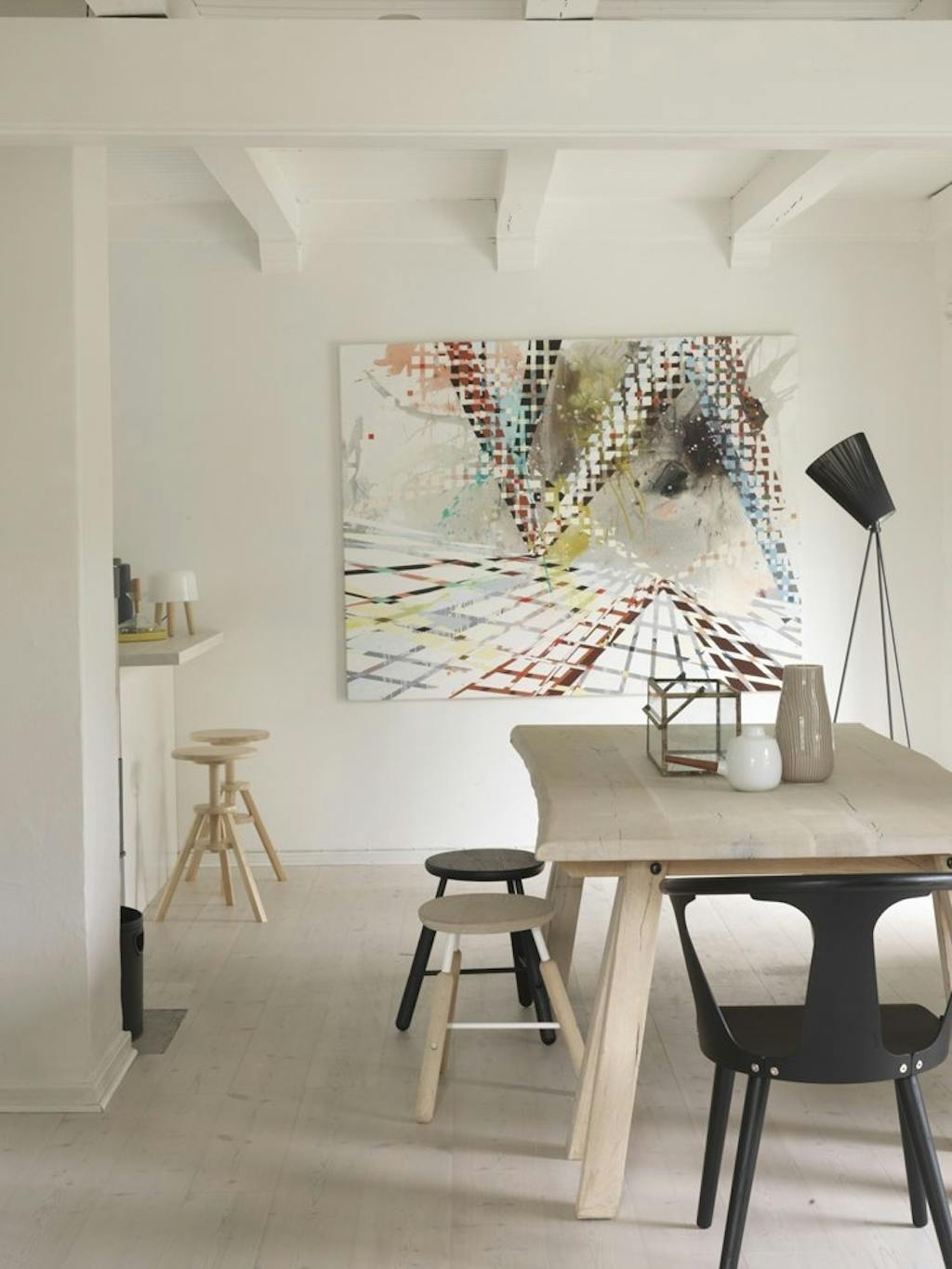 Sara Houborgs indretningsfilosofi er kun at have ting i huset, som bliver brugt - Jeg forsøger at holde vores indretning simpel efter princippet “en ting ind, en ting ud”. Det er vigtigt for os ikke at proppe huset med ting. Så hellere have få, men velvalgte møbler med en betydning for os, siger hun.