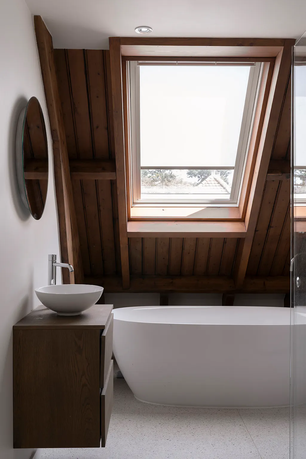 – Vi ønskede at bevare husets originale detaljer, men med moderne bekvemmeligheder. Tænk gulvvarme, solpaneler og isolerede vinduer – alt sammen integreret i et design, der prioriterer ro, kvalitet og karakter, siger Nancy, den ene halvdel af det par, der bor i huset sammen med to børn og to golden retrievere,