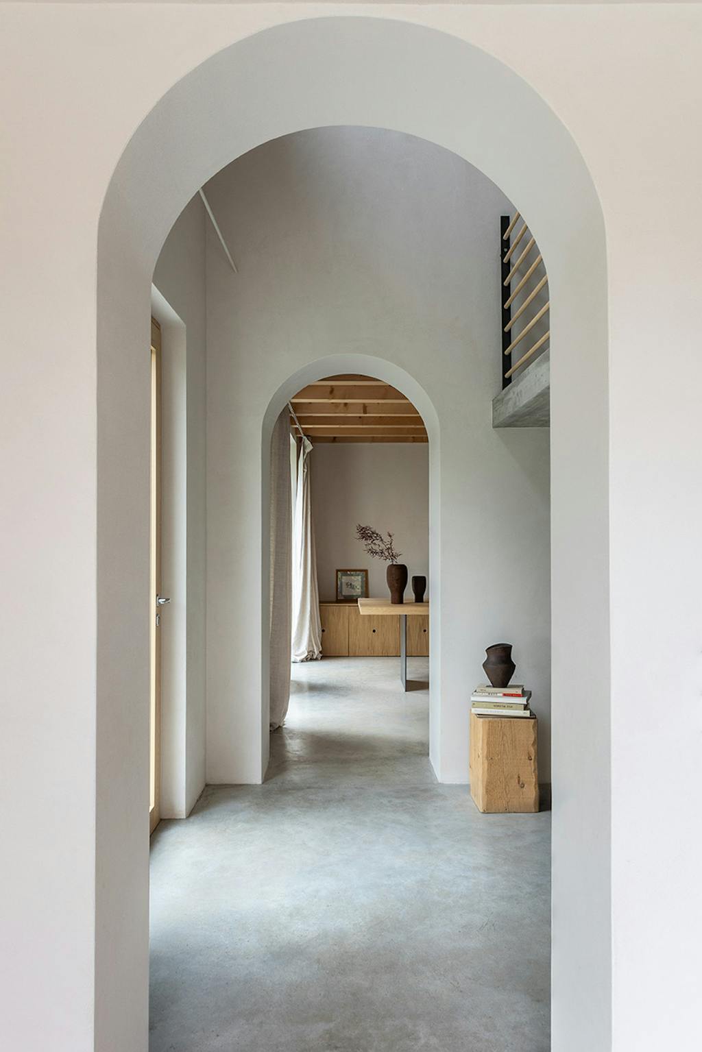 Kort sagt resulterede dette i et hjem med en fornemmelse af fornyelse, som samtidig respekterer husets oprindelige atmosfære; fx blev en buet gennemgang reddet, fordi det skaber et smukt spil af lys og skygger både på de lodrette og vandrette flader, når der ikke er nogen hjørner og skarpe vinkler, forklarer arkitekt Luca Toniolo om sit arbejde.