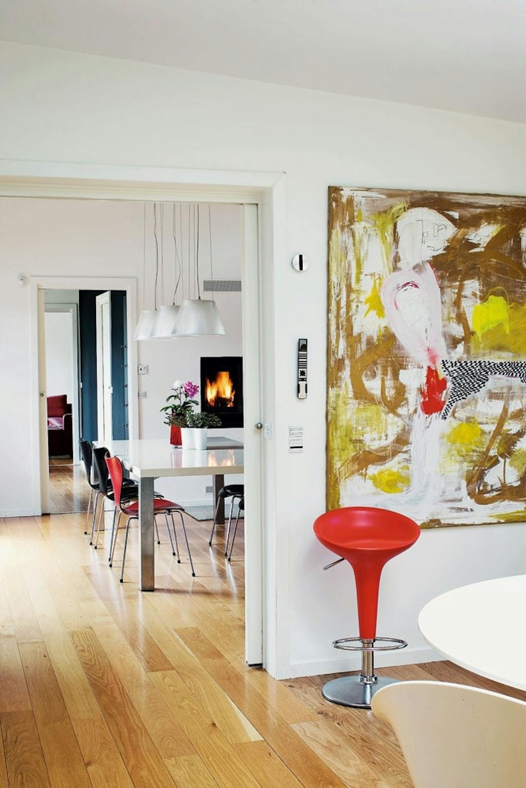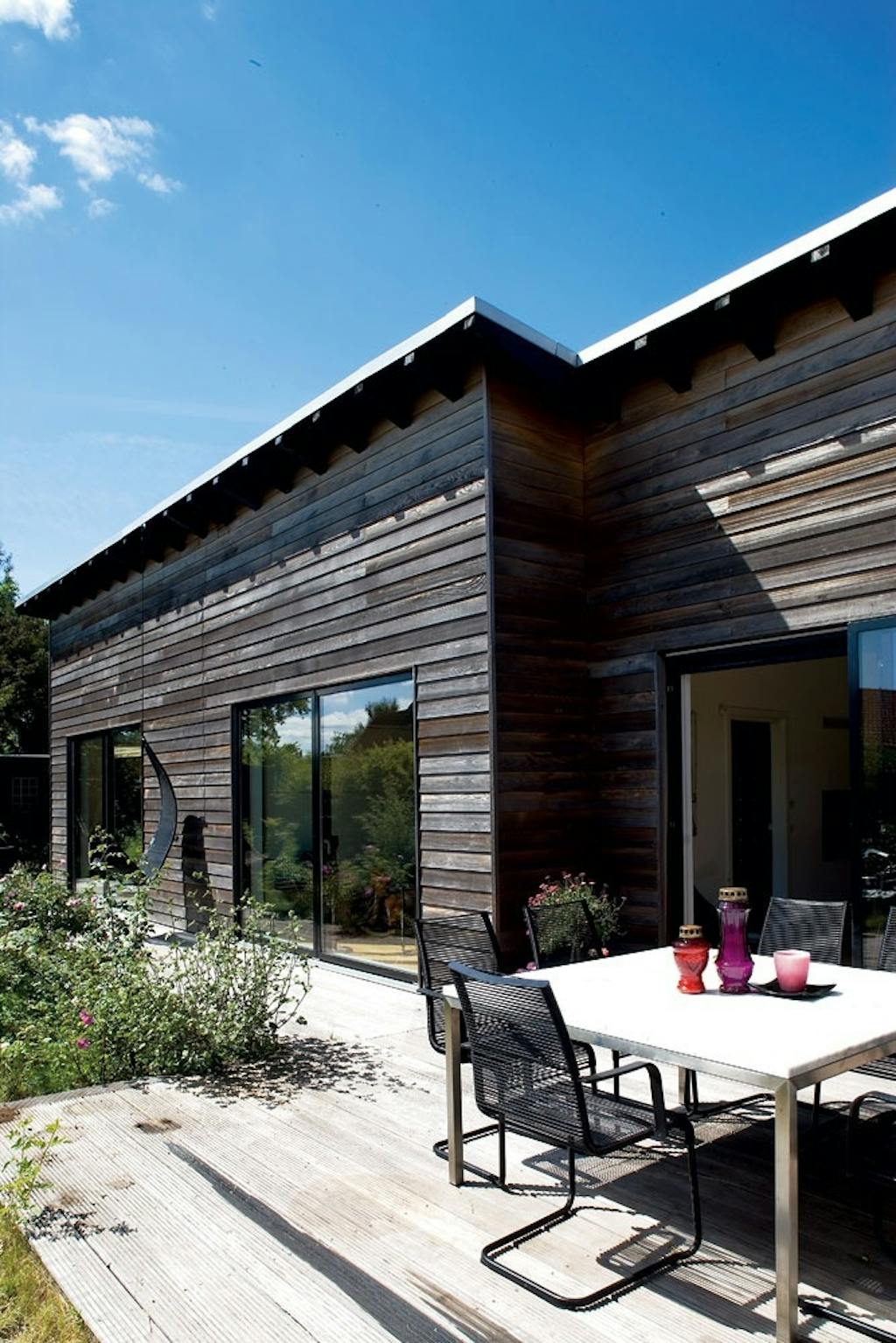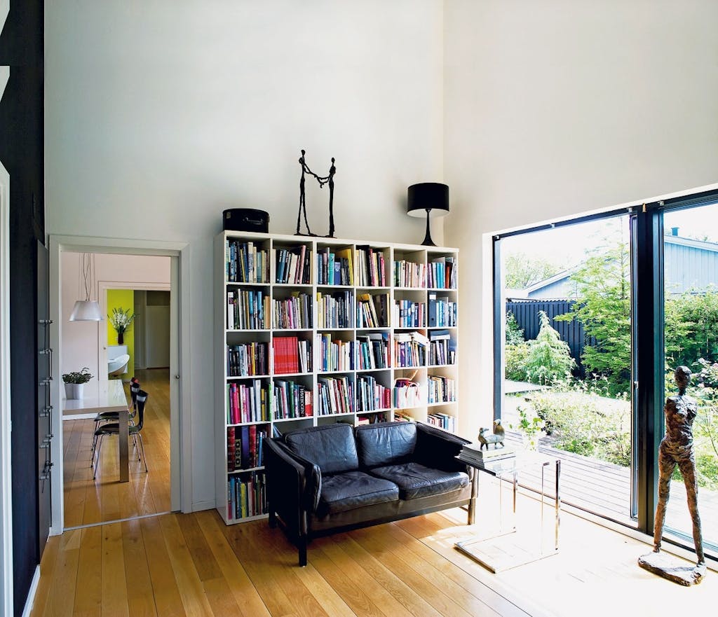 Hele tre arkitekter kom med ideer og tegninger, inden familien endelig fandt en løsning, der passede en ekstra huskrop i cedertræ, der hægter sig på det originale parcelhus. I husets nye del er loftshøjden hele 4,5 meter, og det gav ud over masser af lys og luft også en del problemer, da det nye og det gamle hus ikke rigtigt spillede sammen.