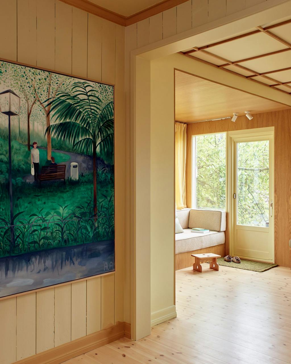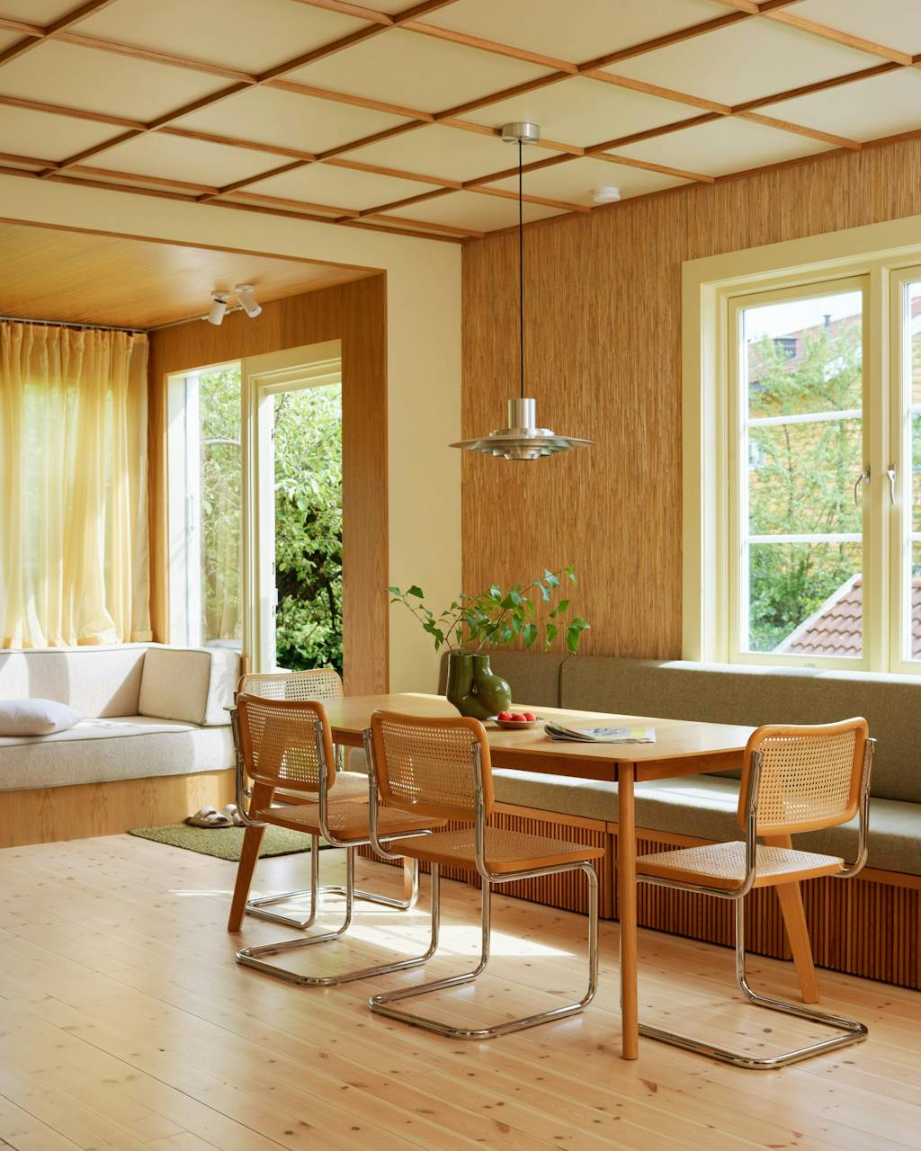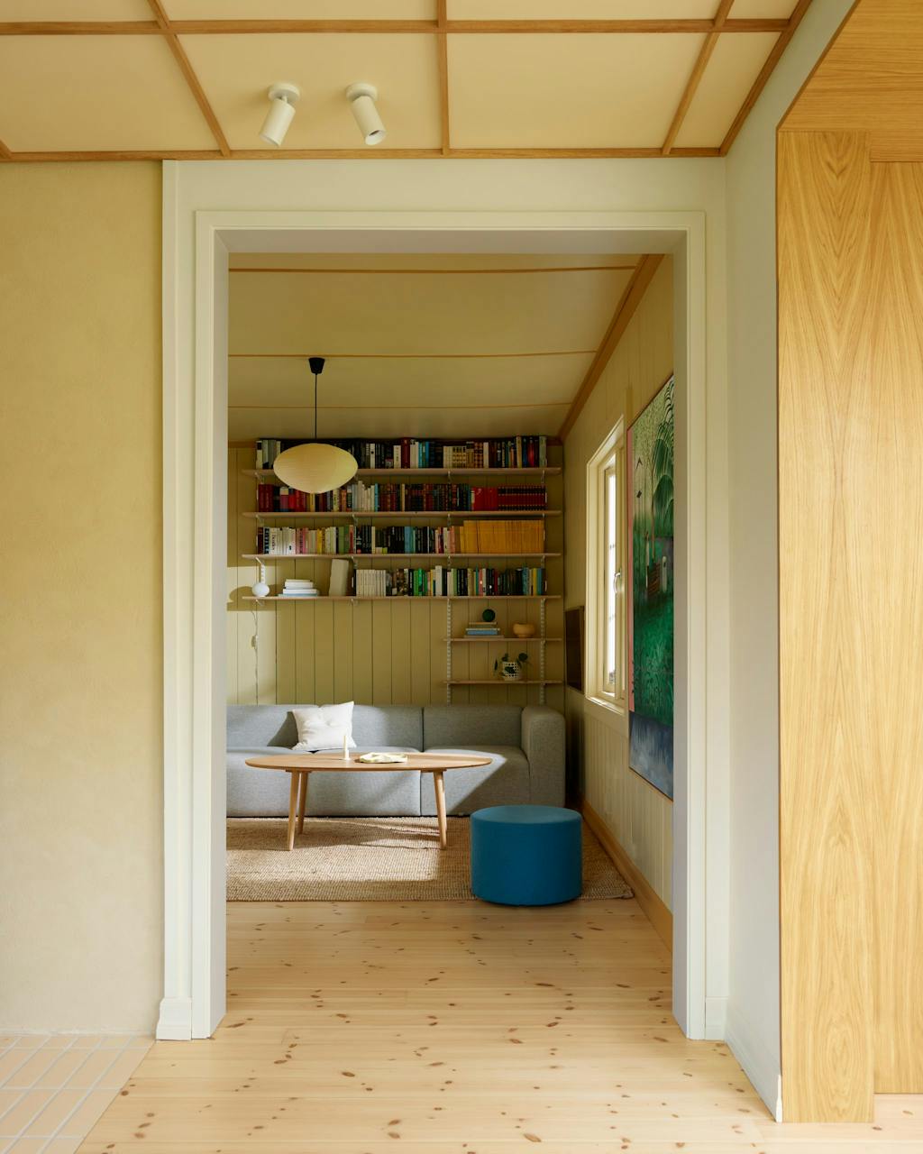 – Så trinnet er mere end et rent æstetisk træk, men vi kan godt lide, at det skaber en naturlig adskillelse fra resten af rummet, siger parret, som også fremhæver rummets kasseloft – en nyskabelse, der føles, som om det kunne have været en original del af rummets design, og som samtidig skaber associationer til japansk arkitektur.