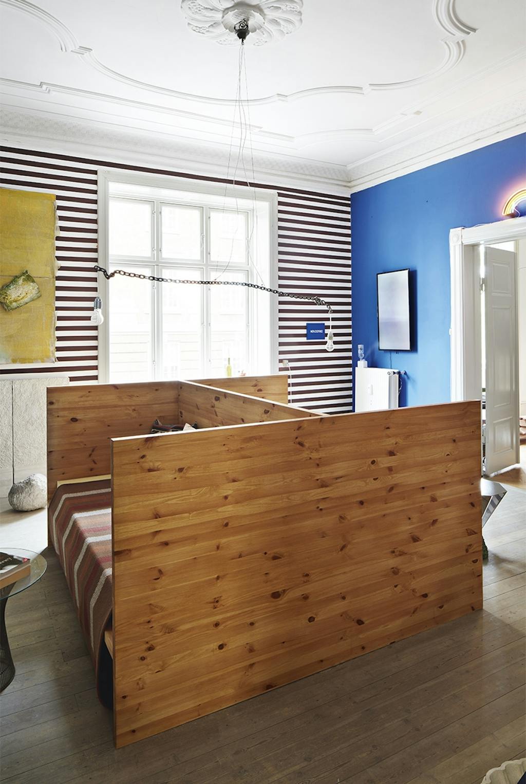Lejligheden blev udstyret med hems for seks år siden. Den fungerer som soveværelse og har udkig over Ugo Rondinones værk Stars.