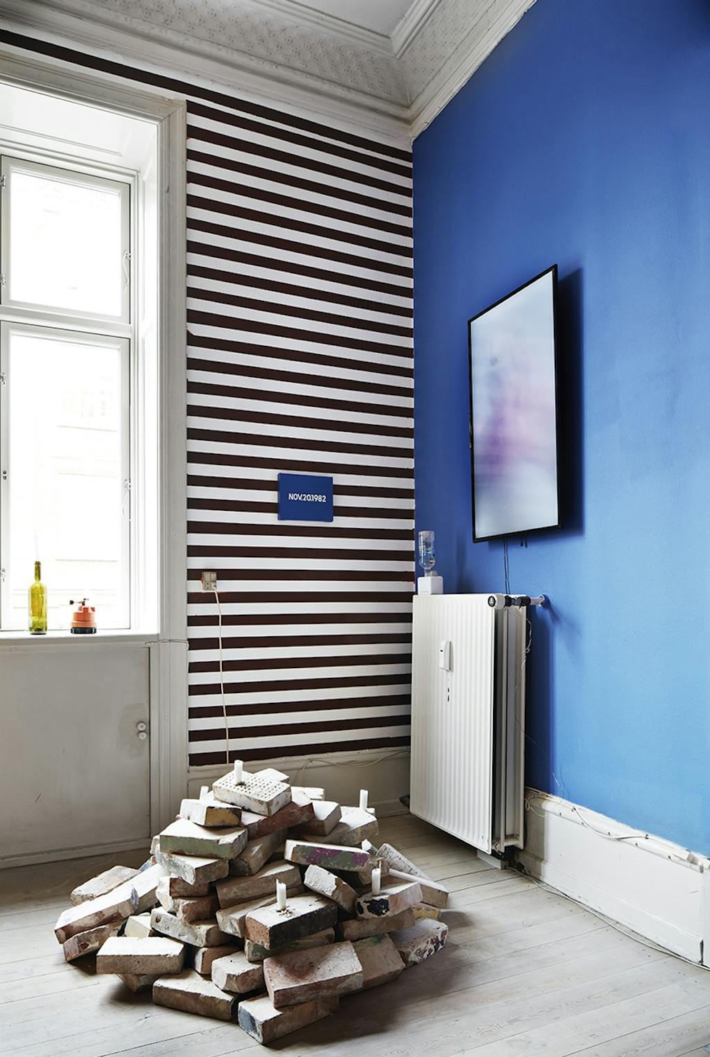 Lejligheden er derfor Peter Ambys eget kunstunivers, som han kan blive ved med at gå på opdagelse i. Og lave om på. Han er typen, der altid har et nyt projekt i tankerne. Bare i 2017 har han flyttet rundt på de tre stuer, revet en væg ned i gæsteværelset, malet en af stuens vægge kongeblå, mens trappen op til hemsen er blevet lyserød.