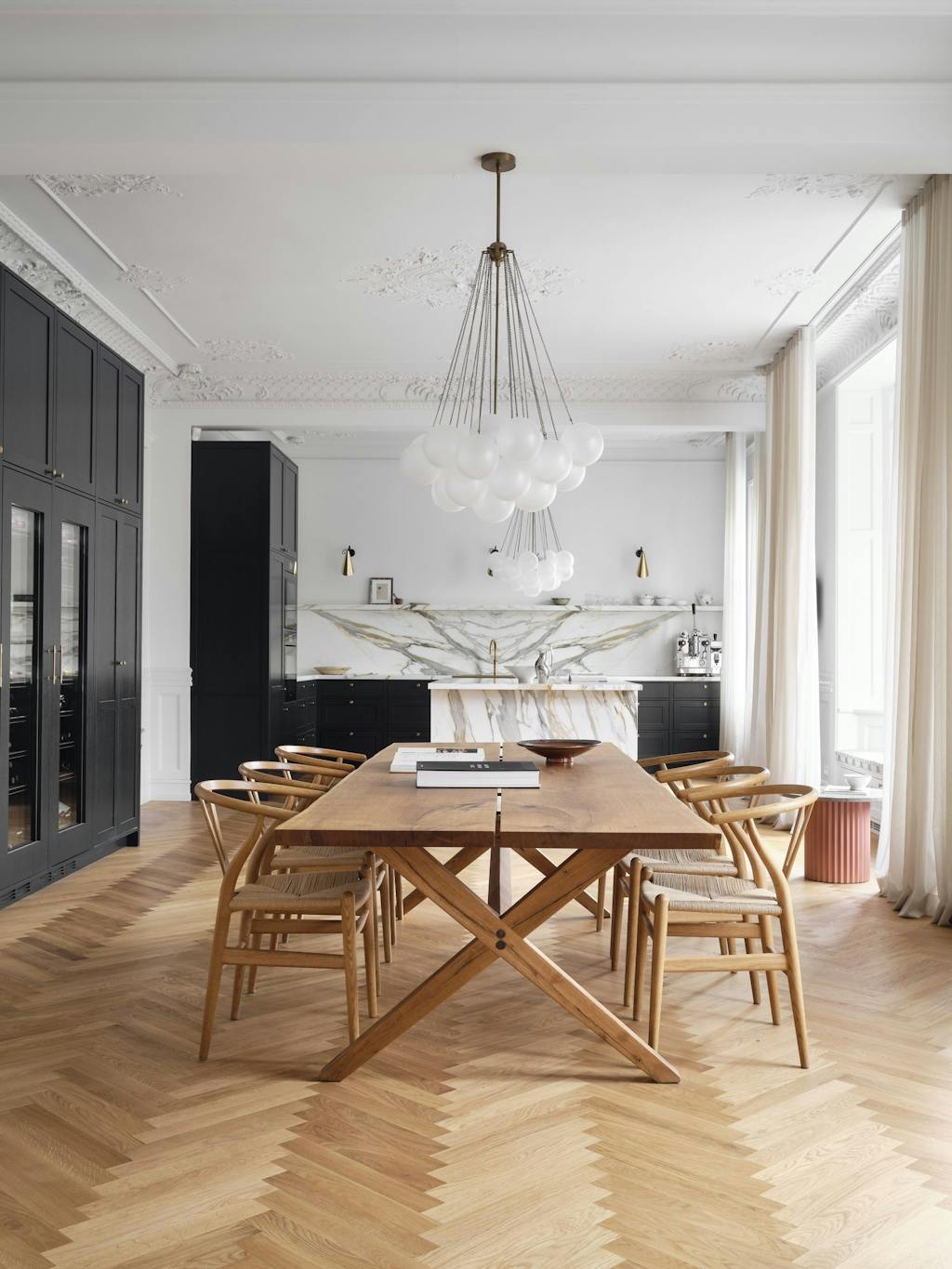 Et overflødighedshorn af detaljer, marmor og stukkatur og en stemning inspireret af 1920’ernes dekadence er noget af det, der kendetegner indretningsarkitekt Tine Lindeburgs hjem – en lejlighed på Hjalmar Brantings Plads i København indrettet med et misundelsesværdigt æstetisk greb, der oser af overskud og old Hollywood.