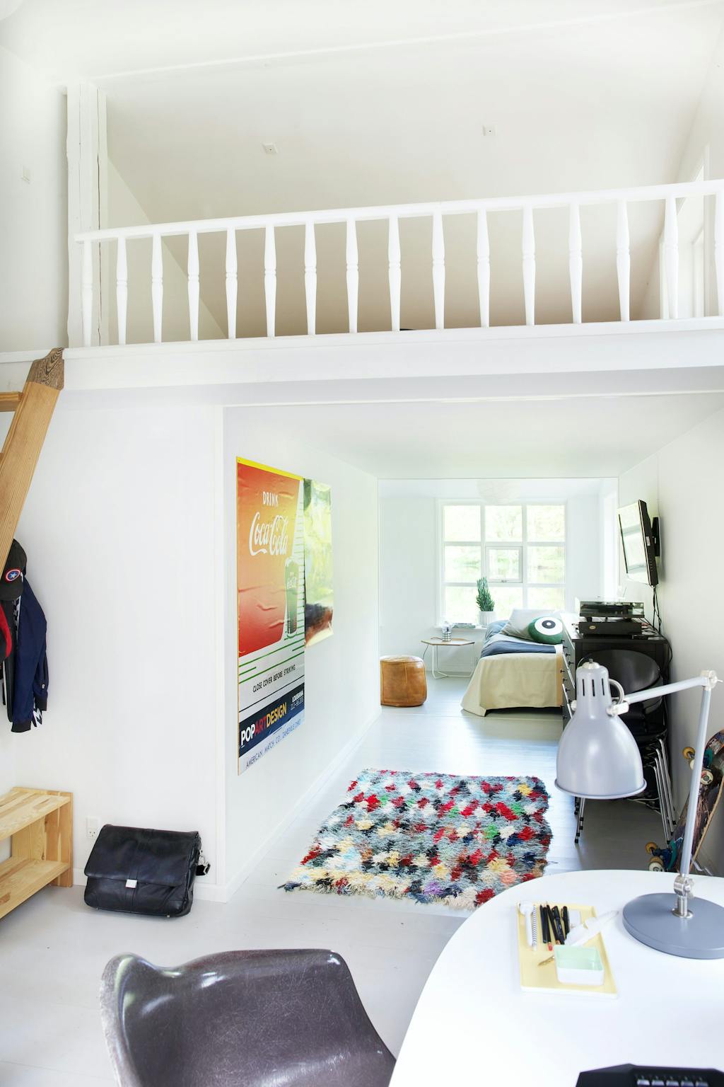 Skrivebordsstol fra Eames. Tæppet hedder Boucherouite, er marokkansk og købt hos Kirsten Fribert.