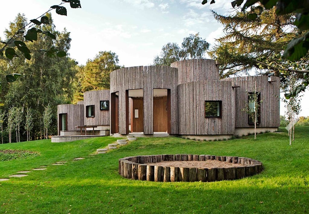 Den smukke, moderne og firlængede gård i træ har den skønneste beliggenhed i naturen på Møn. Kig med indenfor her!
