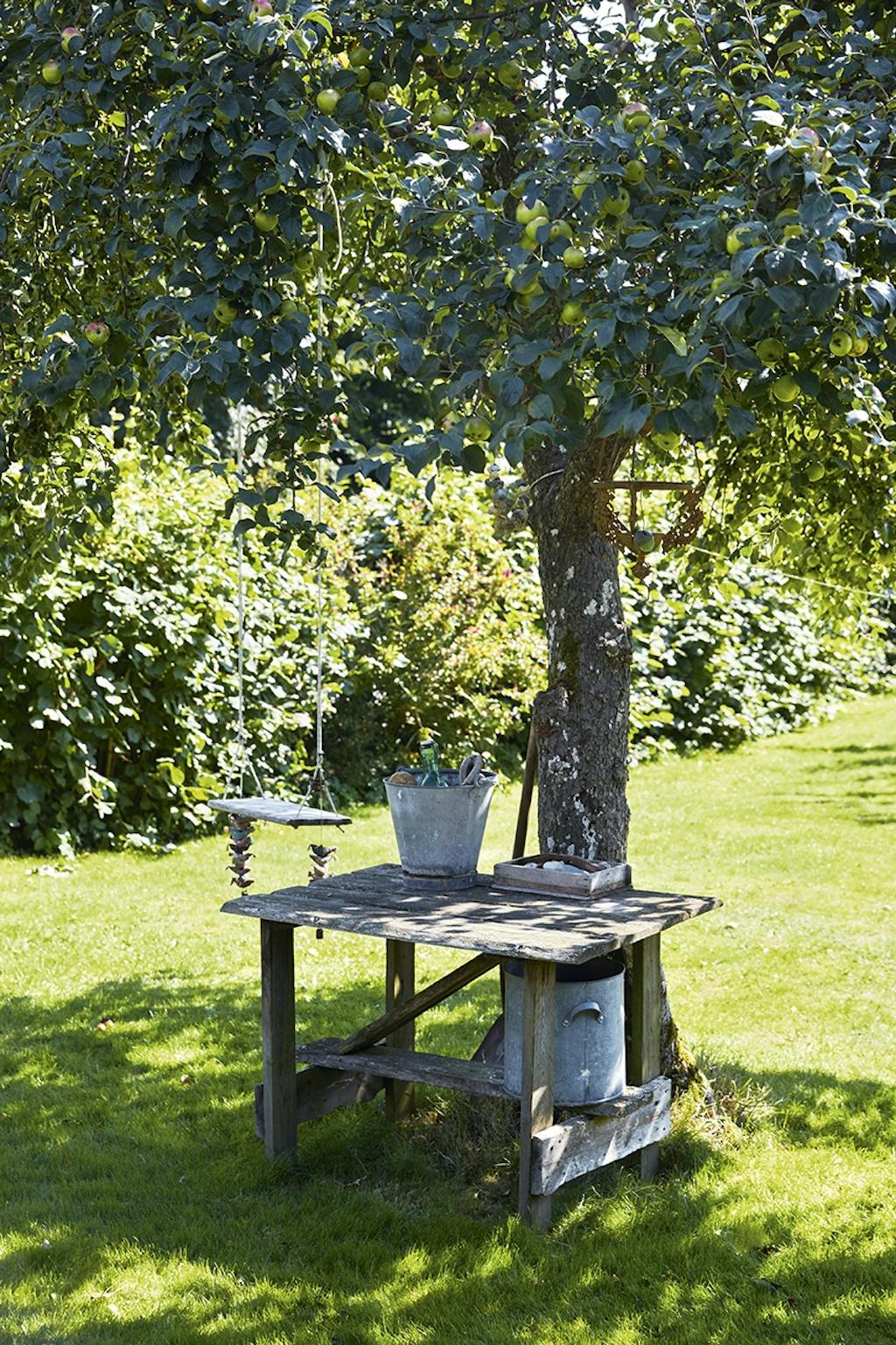 Så snart et træ bliver fældet eller trimmet, bliver det sat til tørre og gemt til et projekt. Rundt omkring i haven står installationer som gynger, vipper m.m.