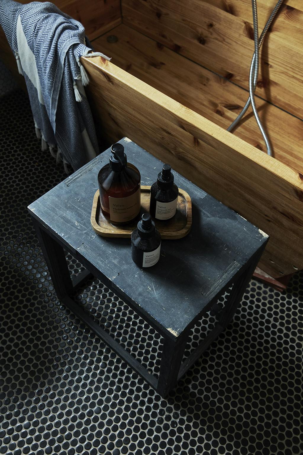 – Vi ville gerne bevare murstensmuren, da den er med til at give huset sin særlige karakter. Muren var ikke oprindeligt lyserød, men hvid med en lille smule rosa i sig. Og så tænkte vi bare: Okay, lad os give den fuld smæk. Jeg synes, det giver en skævhed, så alt ikke bare bliver så pænt. Der er sådan lidt pizzeria over det eller sådan lidt spanish vibe, og det blev ligesom også startskuddet til at arbejde videre med Viroc i farver i stedet for kun at vælge det i grå, som ellers er det mest anvendte. På en eller anden måde får huset en lidt varm sydlandsk stemning, som vi godt kan lide, siger Nikoline.