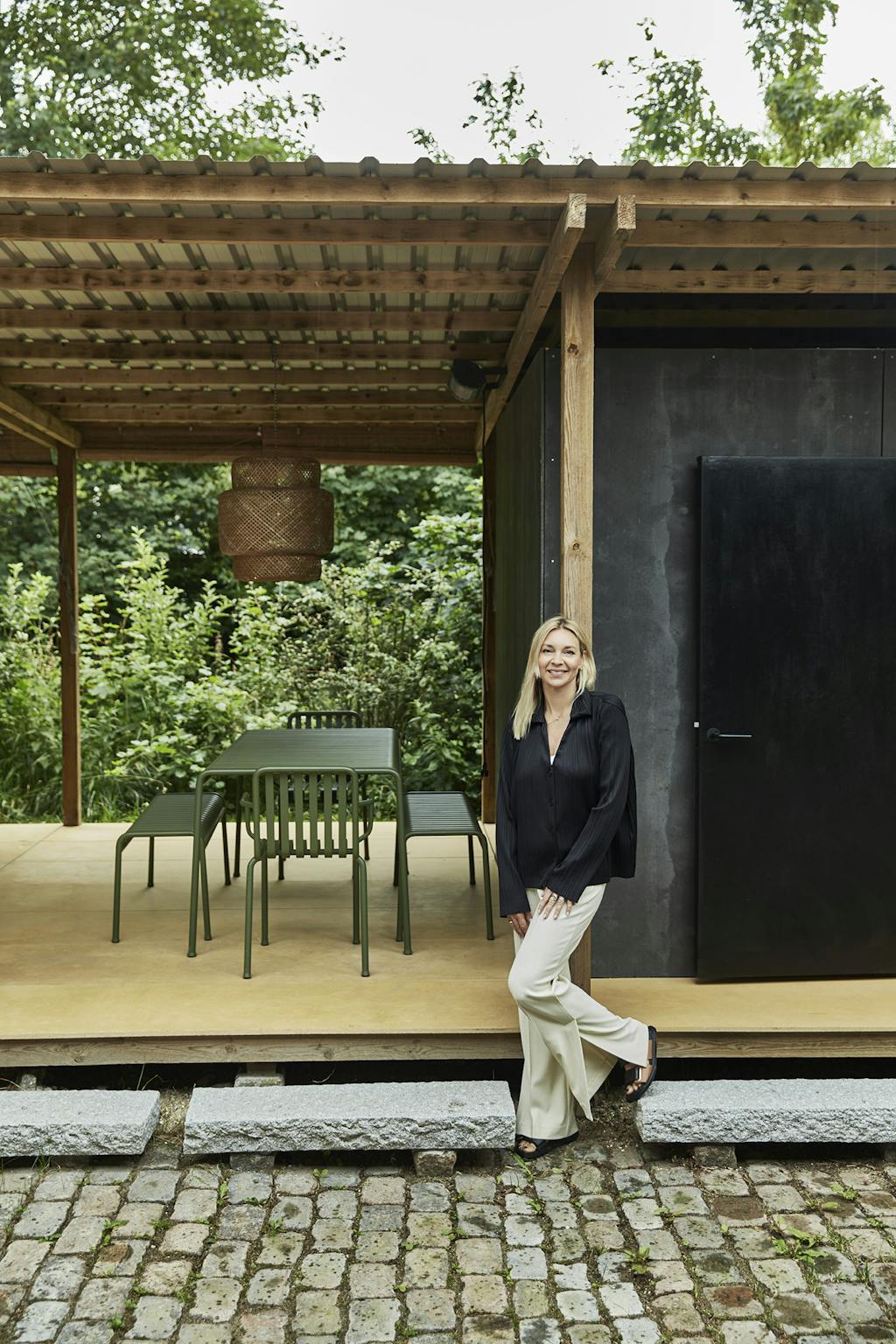 – Man kan nærmest lave terrassen som et inderum, når man ruller gardinerne ned og tænder varmelampen og lyset. Og på terrassen på forsiden af huset har vi også en kæmpe markise, som vi kan køre hele vejen ud, så man kan sidde ude, selvom der er aftendug, eller det drypper lidt. Derude har vi også terrassevarmere og lys. Det er skønt, at man kan forlænge årstiden på den måde. Det giver supergod mening i det land, vi bor i, at man hele tiden kan justere omgivelserne efter vejret, fordi der ikke er noget, der hedder vejrgaranti. På den måde bruger vi også huset meget om vinteren. Noget af det bedste ved det her hus, som bare fungerer, er, at det er så fleksibelt. Det sætter vi utrolig stor pris på, forklarer Nikoline.