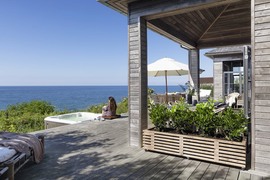 Selve sommerhuset var nedrivningsparat, men grunden, 28 m over strandniveau og med panoramaudsigt over havet, var og er enestående.