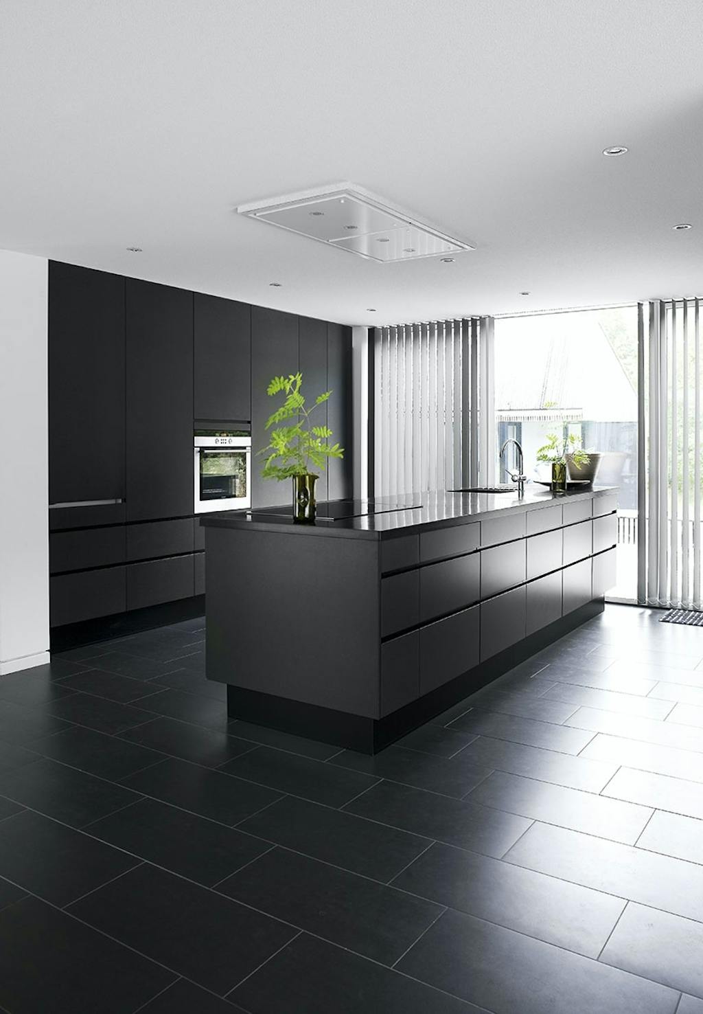 indenfor mærker man intet til den dualisme, der præger eksteriøret. Fra man træder ind, til man bevæger sig ud på de store terrasse-områder ved stuens glas- facader er der tænkt i en helhed. Materialerne er sten, træ og metal – og der er helt konsekvent valgt sorte, grå eller hvide nuancer.