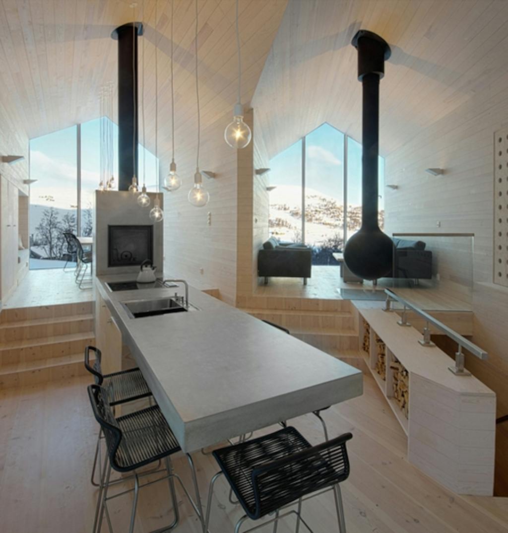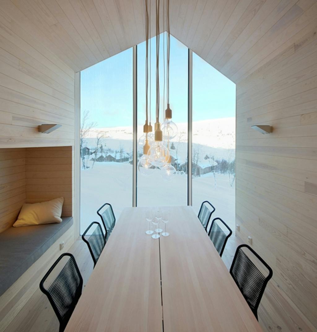 Inden foråret kommer, vil jeg lige nå at vise jer dette fine feriehus ved det populære skisted Hallingdal i Norge. Huset er tegnet af Reiulf Ramstad Arkitekter og er karakteriseret ved et meget klart og skarpt udtryk - og en hovedfløj, der deler sig i to ud mod udsigten.