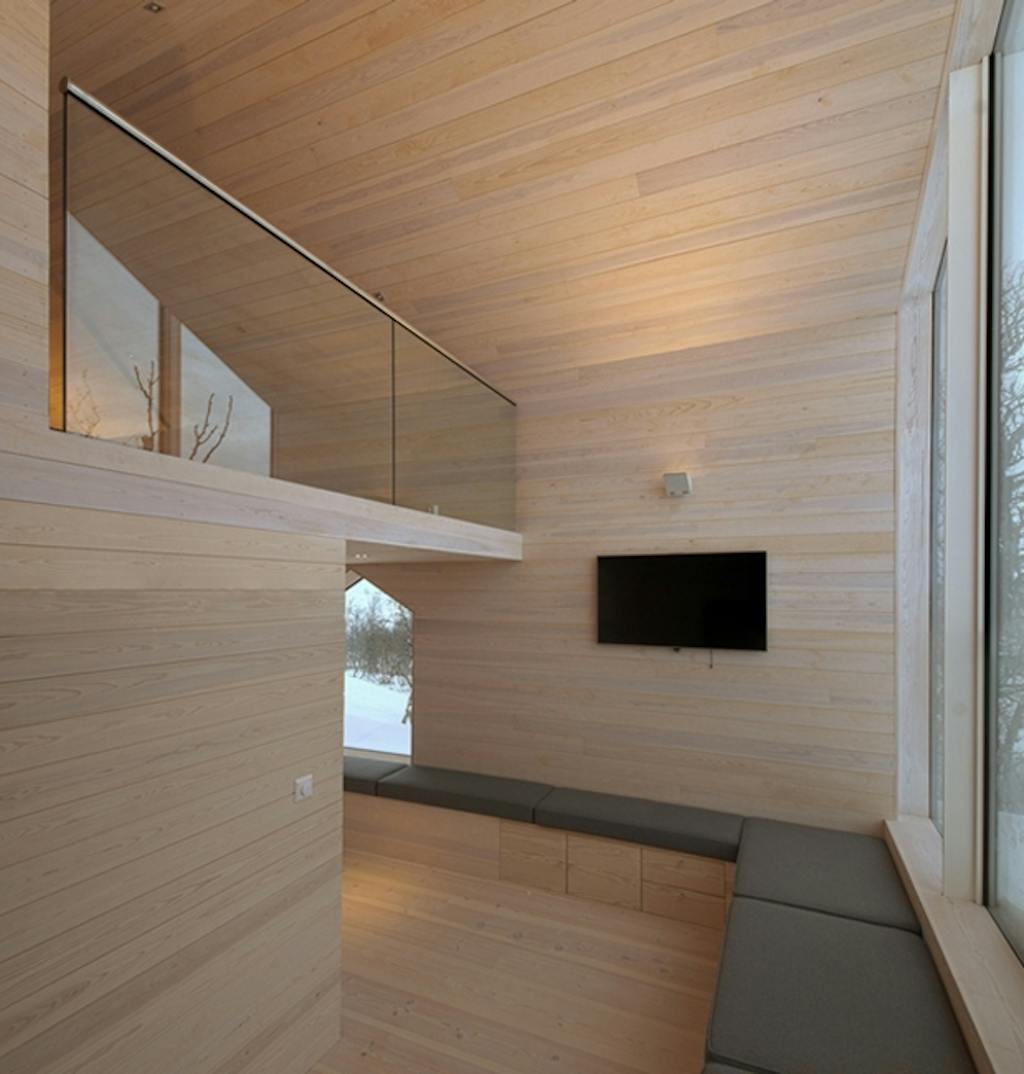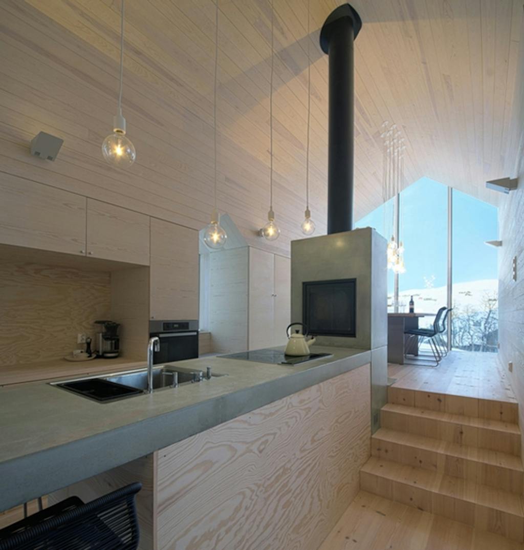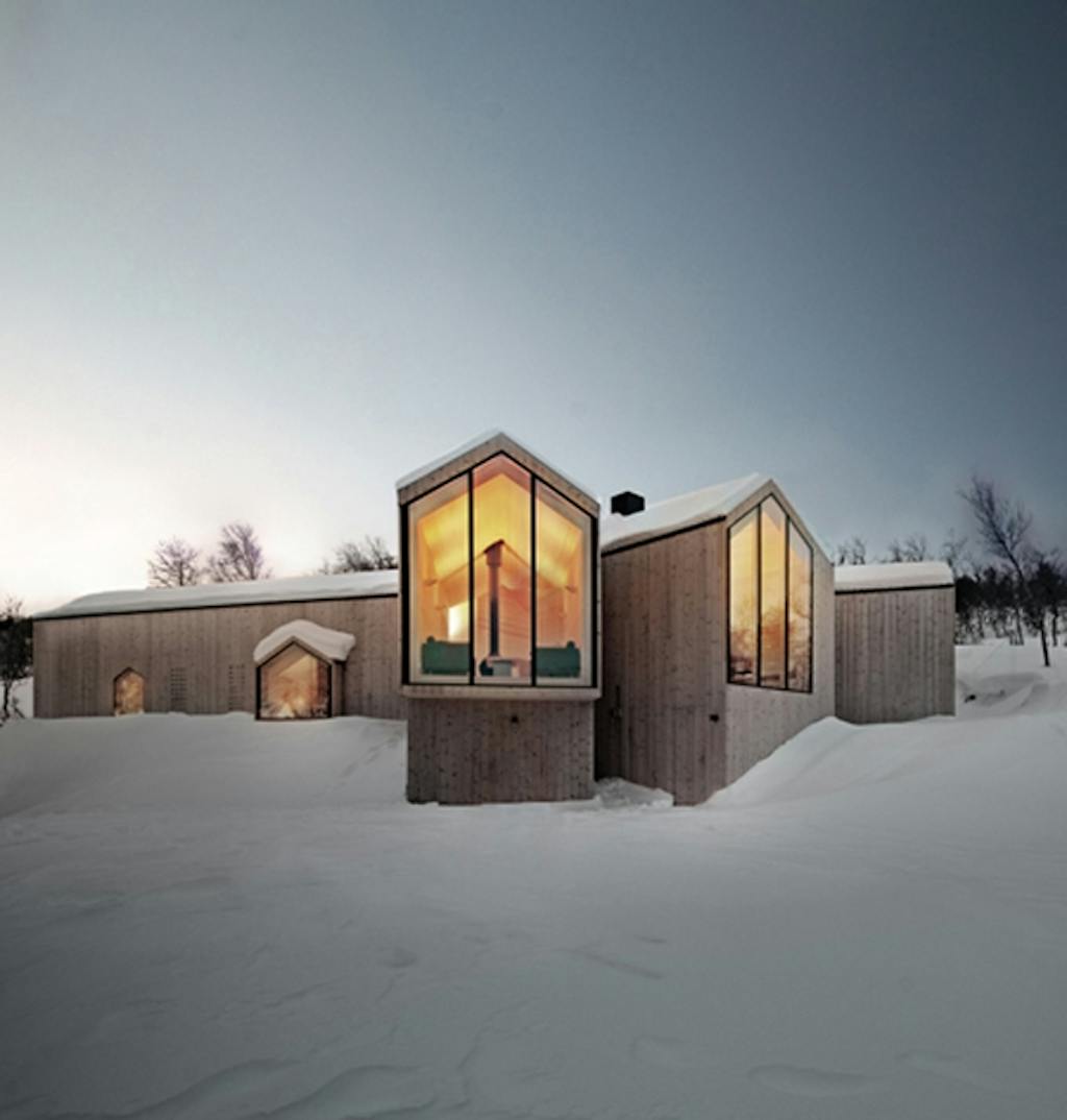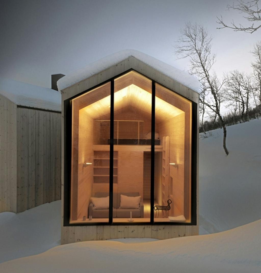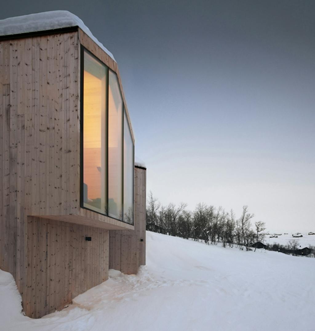 Bjerghytten ligger sig tæt op af den norske byggetradition i form og materiale, og indgår smukt i landskabet. Og med samme træbeklædning på alle ydervægge og tag, er bygningen forenet i en sammenhængende struktur. Beklædningen vil med tiden få en grå patina og udtrykket vil indordne sig bjergenes nuancer.