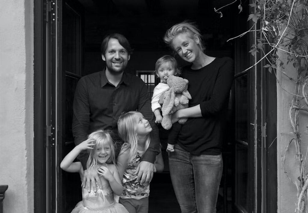 På toppen af denne 1700-talsbygning bor parret sammen med deres tre sønner på henholdsvis 9, 13 og 17 år, og selvom vi kommer midt i kaffe, Crüsli og yoghurt, opvask og nu-skal-du-børste-tænder-vi-skal-udad-døren, hersker der en helt igennem rolig stemning.