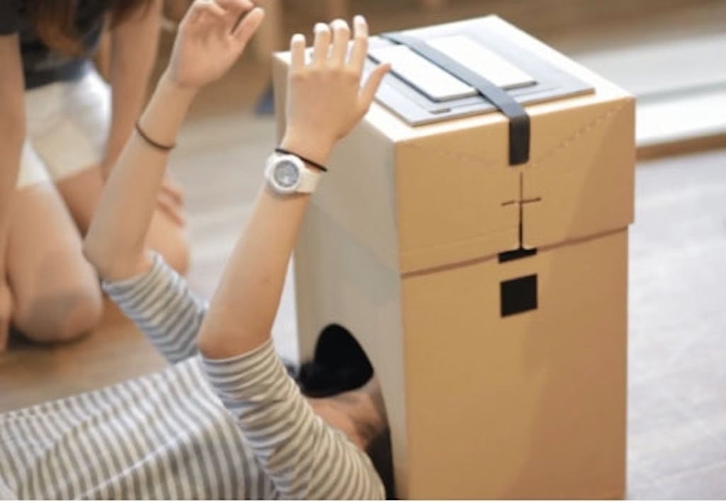 En japansk designer har i ramme alvor bygget en kasse, som man 'gemmer sig i', fortæller Politiken. I Japan er boligerne nemlig meget små.