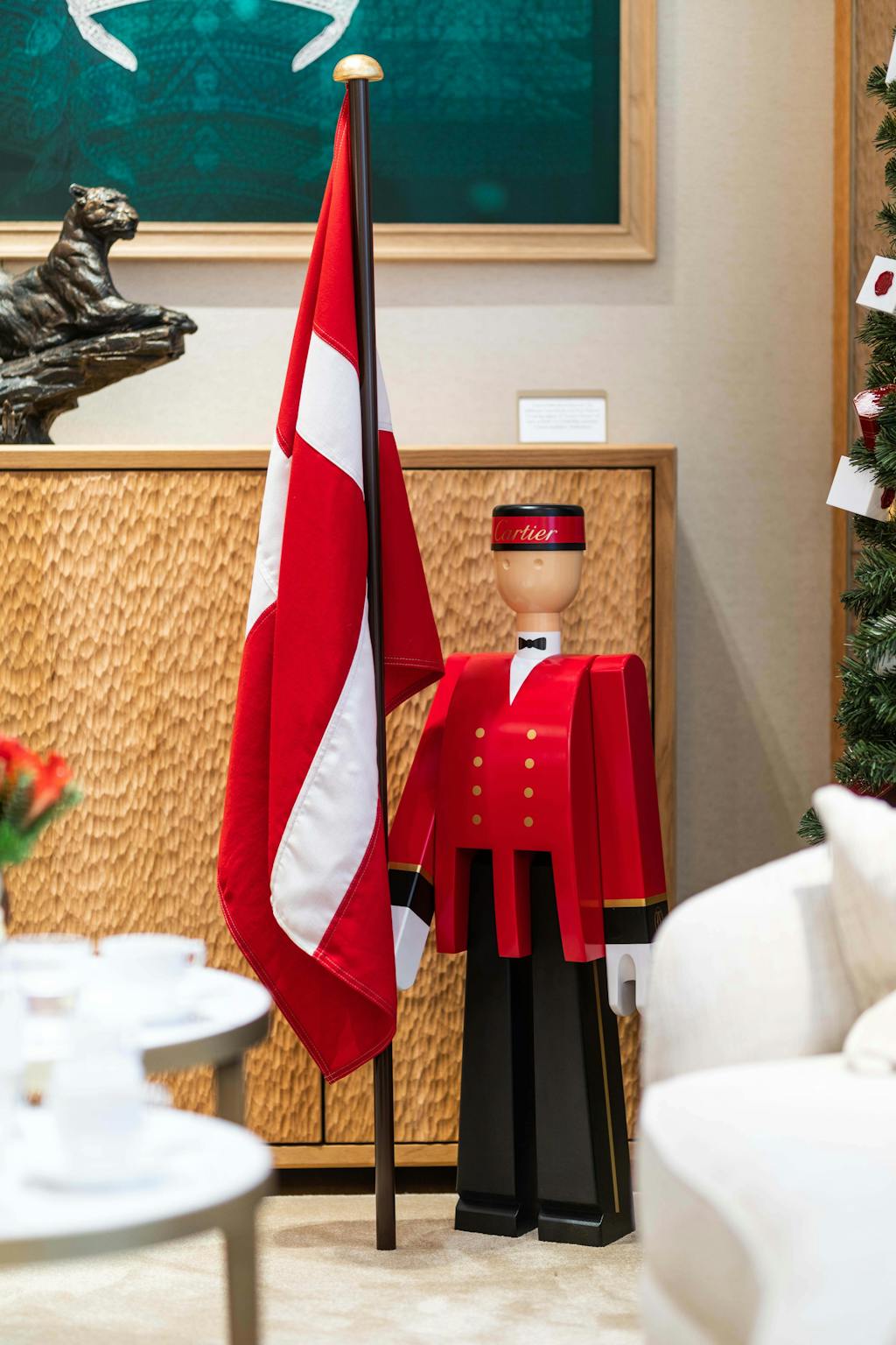 Nu fejrer Cartier deres 1 års dag med København og har i den sammenhæng fået designet en "Cartier greeter" i samarbejde med Kay Bojesen.