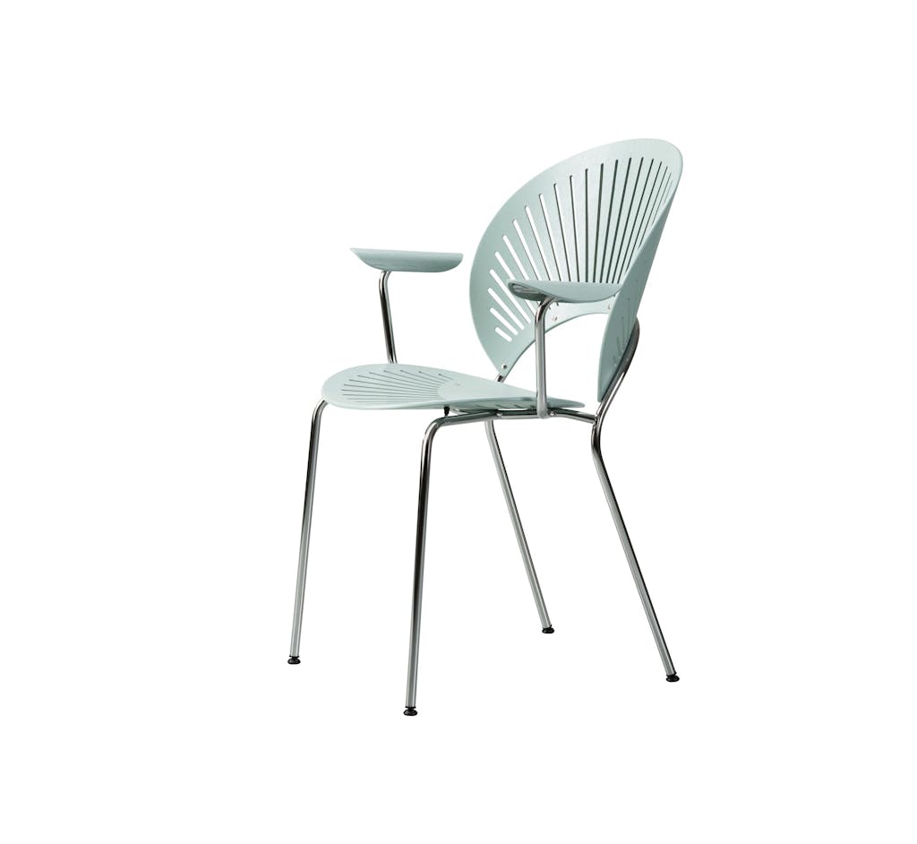 Nanna Ditzels Trinidad stol fra 1993 er solgt i uanede mængder og den er til stadighed lanceret i nye farver og træsorter. Den populære stol er en leg med lys og skygge. 4149 kr., Fredericia.
