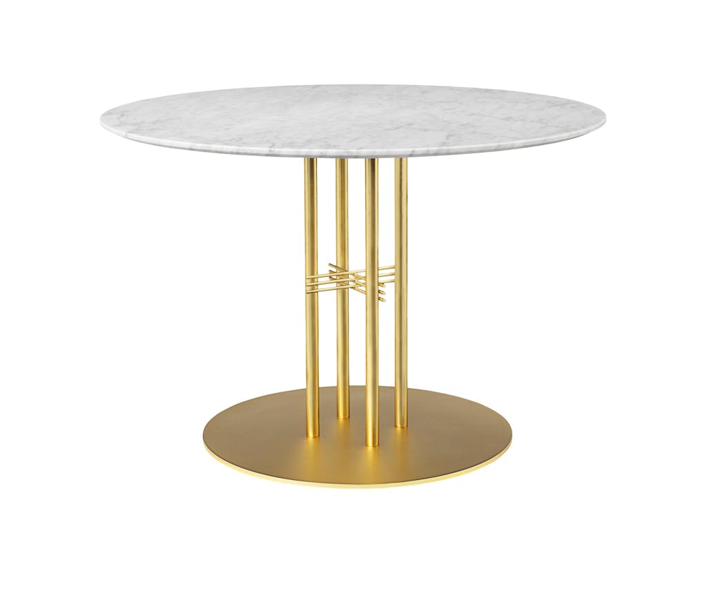 TS Column Dining Table er designerduoen GamFratesis bud på et spisebord til det det intime måltid. Messing og marmor i en stil der blander skandinavisk minimalisme og international elegance. Fra 11.995 kr., GUBI.