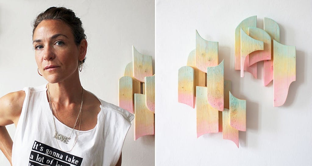 Hun er i den grad svær at sætte i bås. Hun arbejder med tekstiler, træ, broderier, maleri, grafik, fashion, tekster. Det er avangarde og performance. En multikunstner, der bevæger sig i mange retninger, men som samtidig skaber interiør, der kan være i de fleste hjem. Hendes pude Distraction med de mange, dekorative knapper er et interessant og sjovt bud på et hverdagsitem, der pludselig bliver et lille kunstværk. Der er energi og vildskab, og det kan vi godt lide.