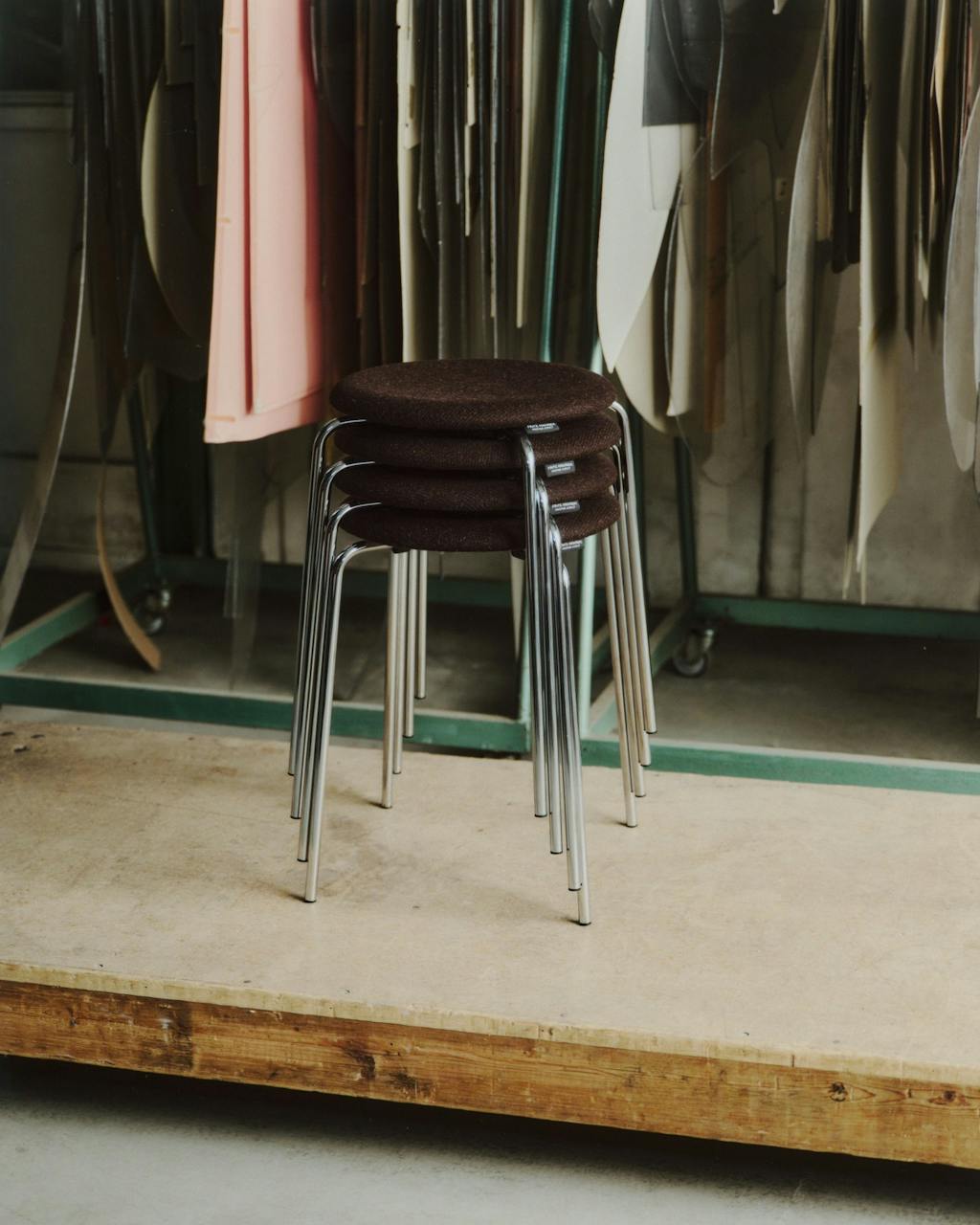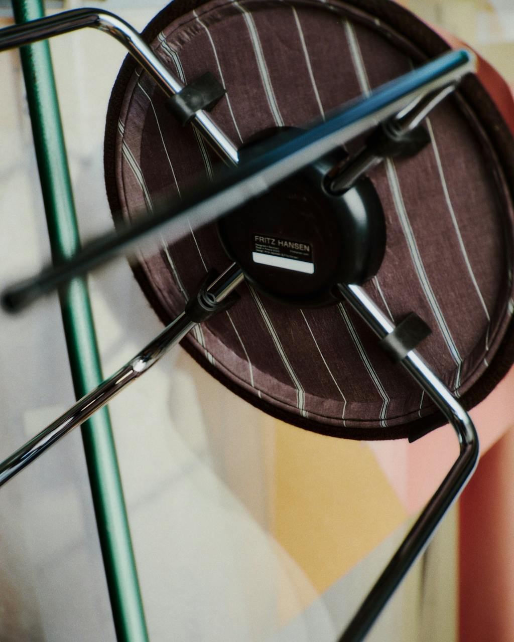 Skamlen, der blev formgivet af Arne Jacobsen i 1954 til Rødovre Rådhus, har derfor fået nyt betræk skabt af overskudsmateriale fra Another Aspects tøjproduktion.