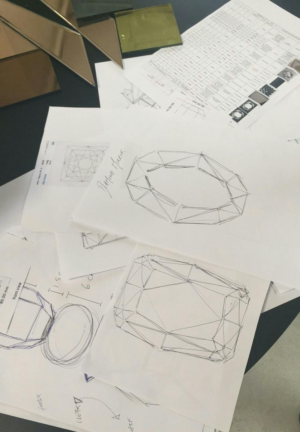 Først og fremmest er det selve produktet, vi har taget udgangspunkt i. Vi elsker spejle og de muligheder, der ligger i materialet. Vi synes, at vi kunne skabe noget, der var anderledes og som bidrog med noget vildt til boligen. Vi var ret glade for tanken om at lave en form for smykke til boligen, der både lænede sig op af det kunstneriske og den designede accessory.